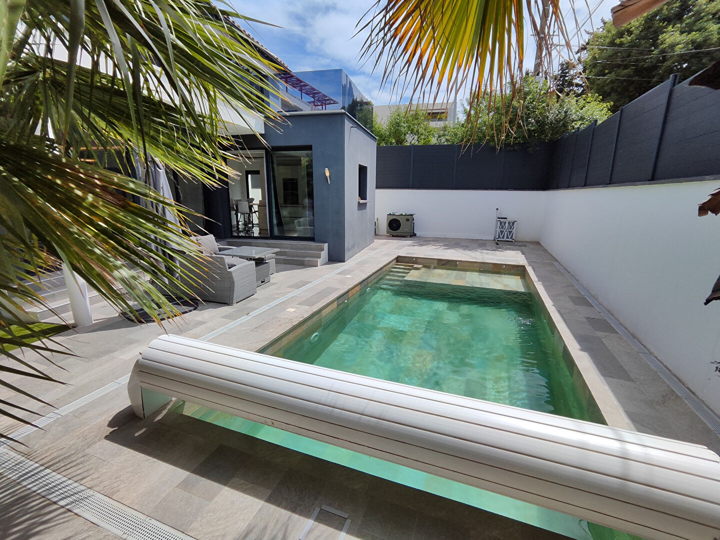 In a highly sought-after residential neighborhood just a stone's throw from the Hôtel de Région and local shops I'd like to introduce you to this magnificent T6 villa converted into a T4 with no adjoining buildings, built in 2021 with quality materials in compliance with the latest energy standards RT2020, offering potential and a very pleasant living environment in Montpellier.