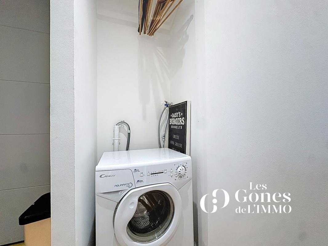 L'espace permet de créer plusieurs configurations : coin salon transformable en espace nuit, cuisine ouverte équipée, et même un espace buanderie avec machine à laver -- un atout exceptionnel pour un studio.