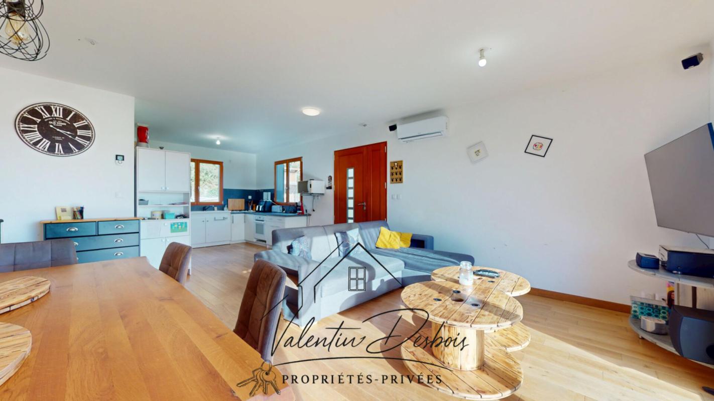 La pièce de vie, spacieuse et conviviale et extrêmement lumineuse, s'ouvre sur une cuisine fonctionnelle, formant un bel espace central.