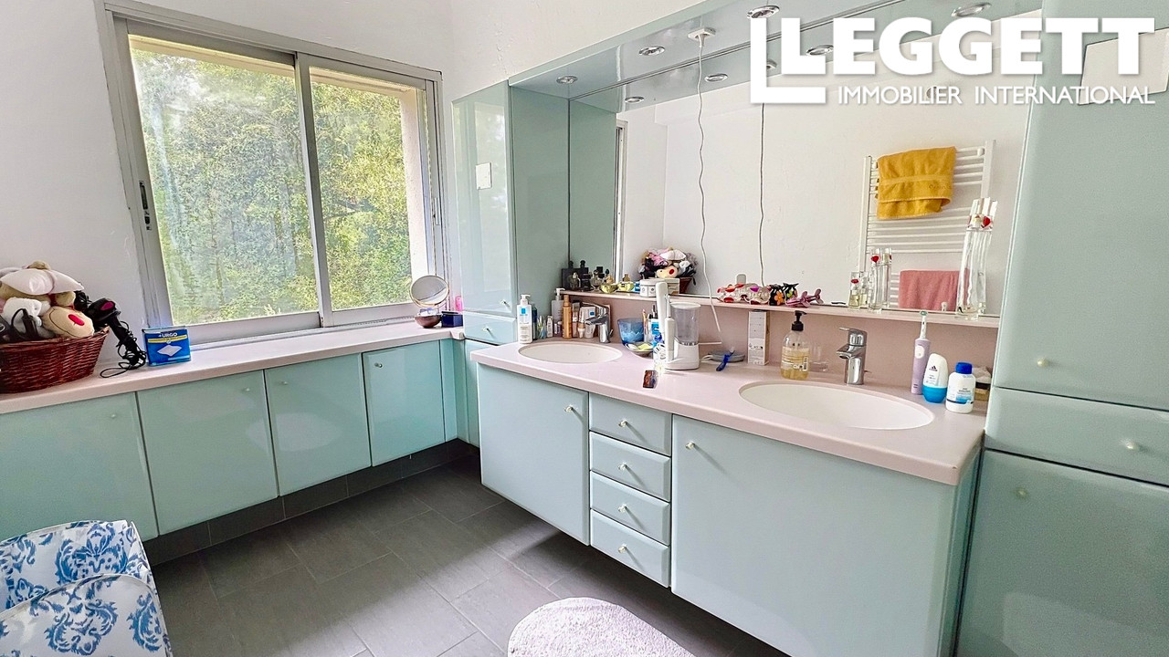 A41556SMG06 - Idéalement située dans un secteur résidentiel calme et proche du centre de Roquefort-les-Pins, cette villa lumineuse d'architecte offre de beaux volumes et une intimité totale, à seulement 20 minutes de Sophia Antipolis et 30 minutes de l'aéroport de Nice. D'une surface d'environ 230 m², elle propose au rez-de-chaussée un vaste séjour d'environ 80 m² baigné de lumière avec coin cheminée, une grande cuisine moderne, une salle d'eau, une chambre ainsi qu'une seconde chambre avec dressing et salle de bains privative, plus WC indépendant. À l'étage, trois chambres dont une avec salle d'eau privative, une salle d'eau supplémentaire et un WC indépendant. Garage et buanderie complètent l'ensemble. La piscine 11 × 5 m fait face aux pièces de vie, profitant d'une vue dégagée, sereine et sans aucun vis-à-vis. Signée par l'architecte Coelho, cette villa se distingue par son caractère unique et ses très beaux volumes, au coeur d'un terrain de 9 150 m².
