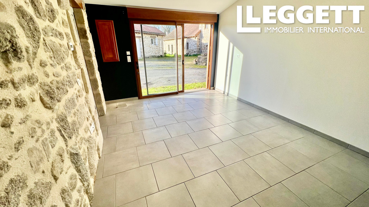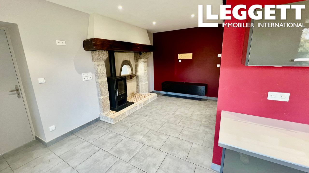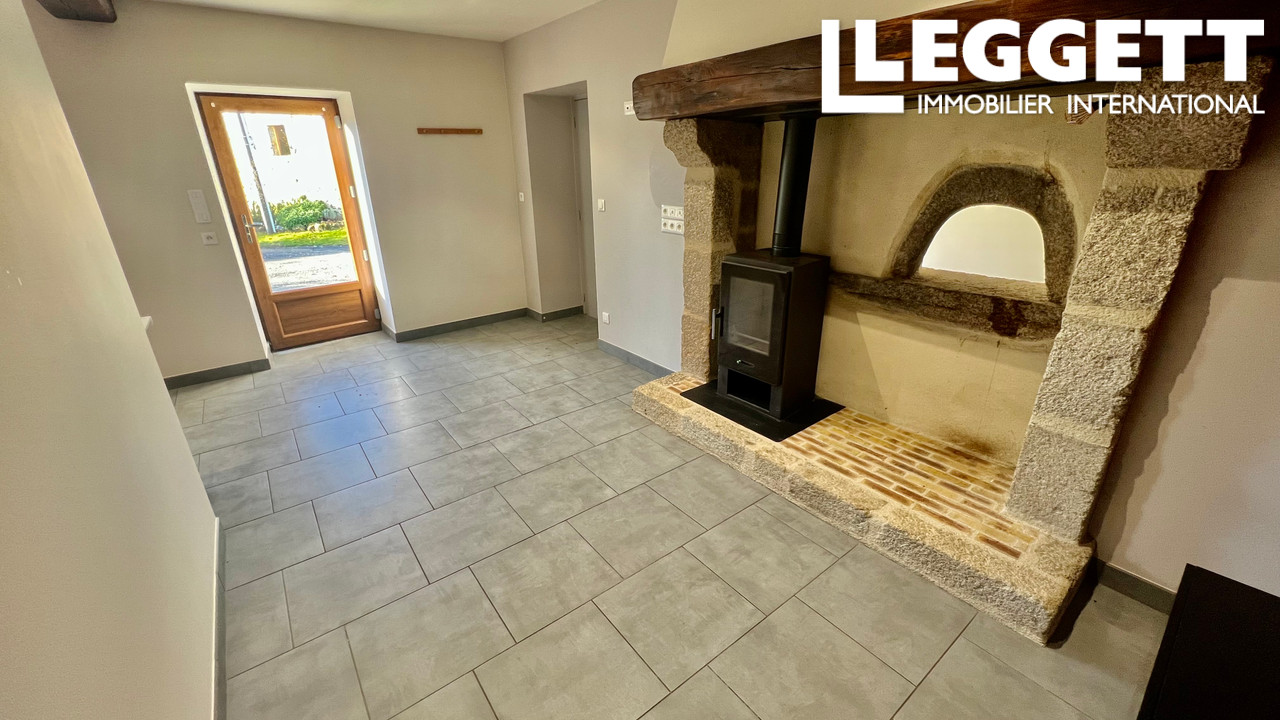 À l'intérieur, la surprise est totale : un espace moderne, propre et parfaitement aménagé. La maison offre deux chambres, des fenêtres double vitrage, le chauffage au sol, ainsi qu'une cuisine contemporaine. Le séjour conserve de jolis éléments d'origine, dont une belle cheminée en pierre avec poêle.