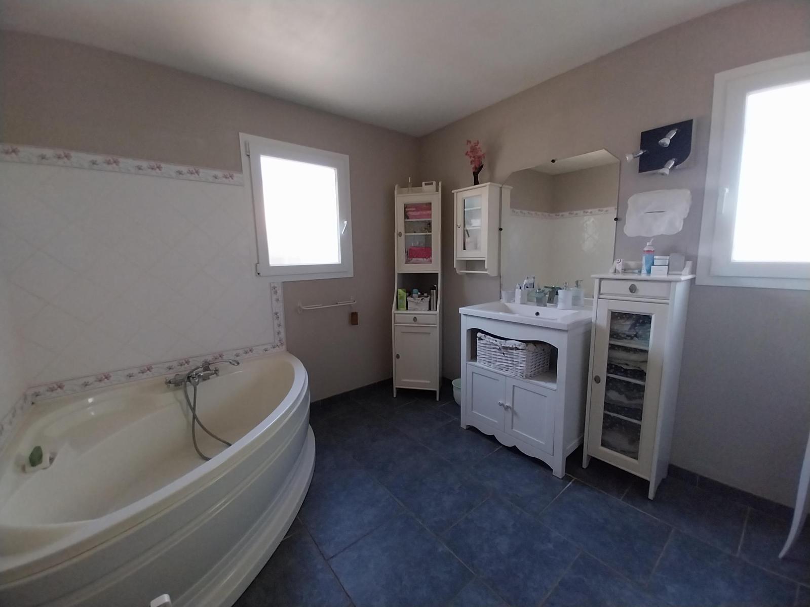 La maison comprend 3 chambres, 1 bureau, 1 dressing,1 salle de bain, 1 salle d'eau et 2 WC, offrant tout le confort nécessaire pour une famille. La cuisine est entièrement équipée, idéale pour préparer de délicieux repas en famille ou entre amis.
