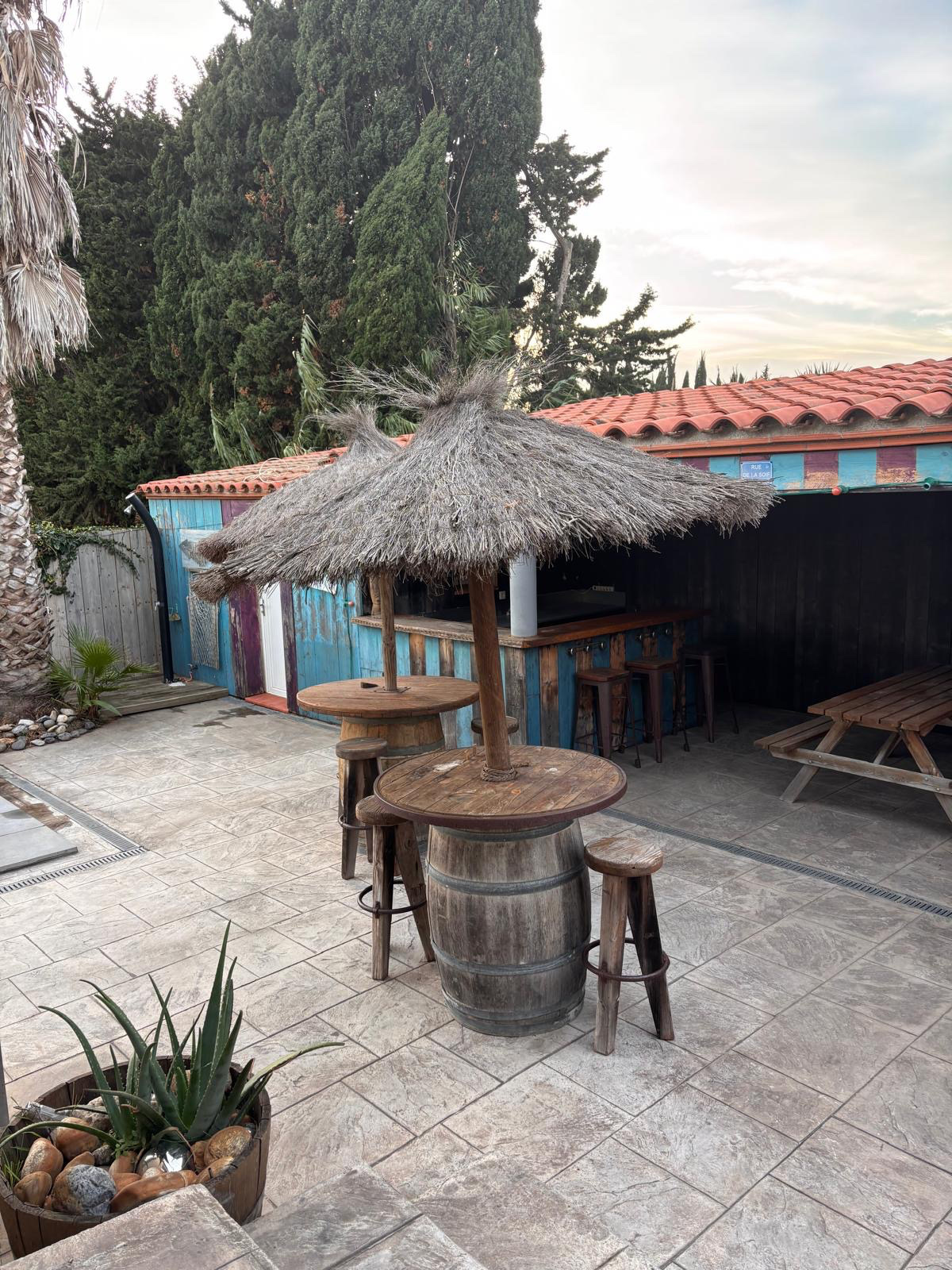 L'extérieur a été pensé pour profiter pleinement du climat méditerranéen. Vous y trouverez une cuisine d'été, plusieurs cabanons de rangement, un WC extérieur, une terrasse conviviale et une piscine au chlore idéale pour les beaux jours. Nombreuses possibilités de stationnement à l'intérieur de la parcelle.
