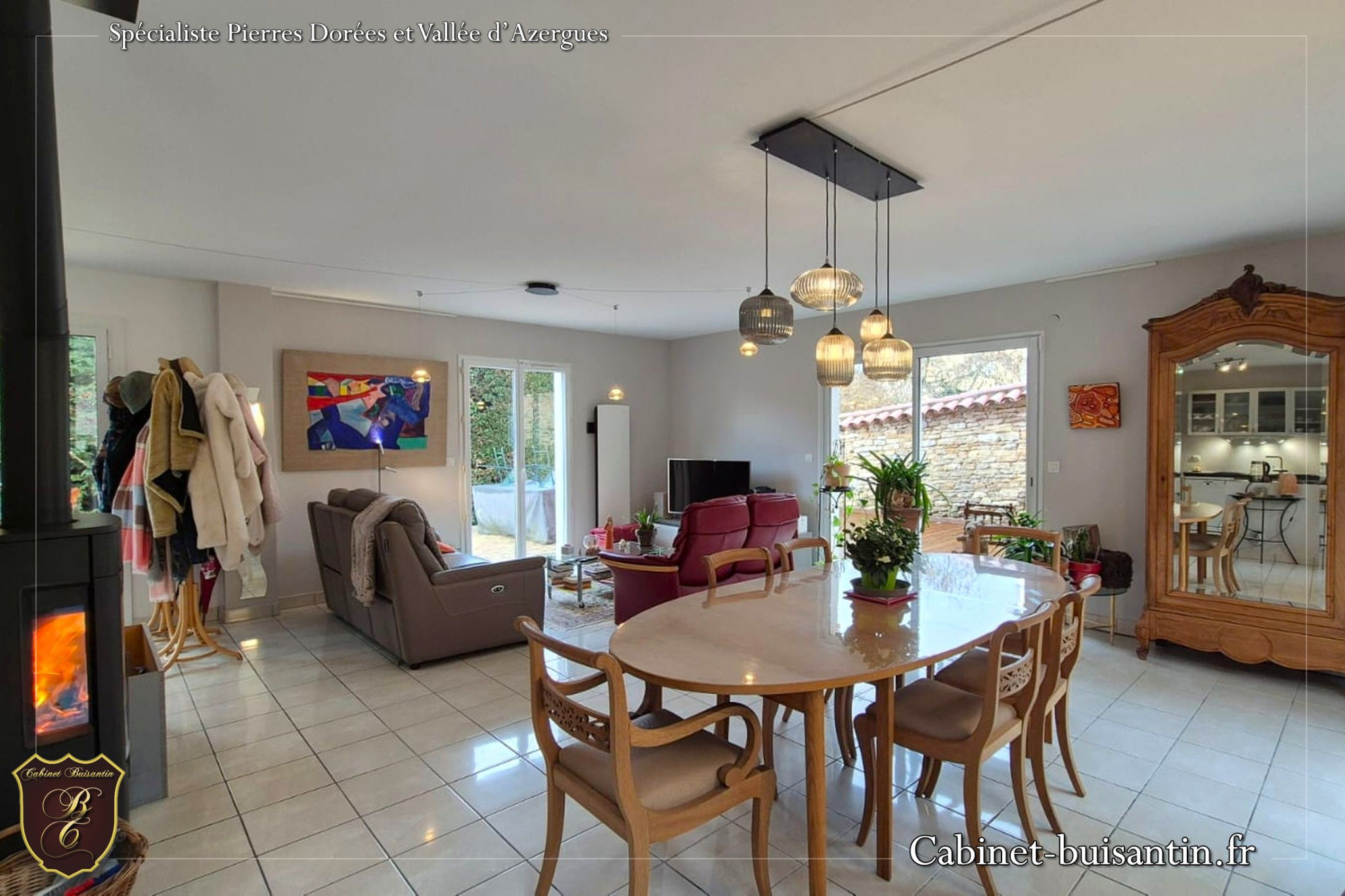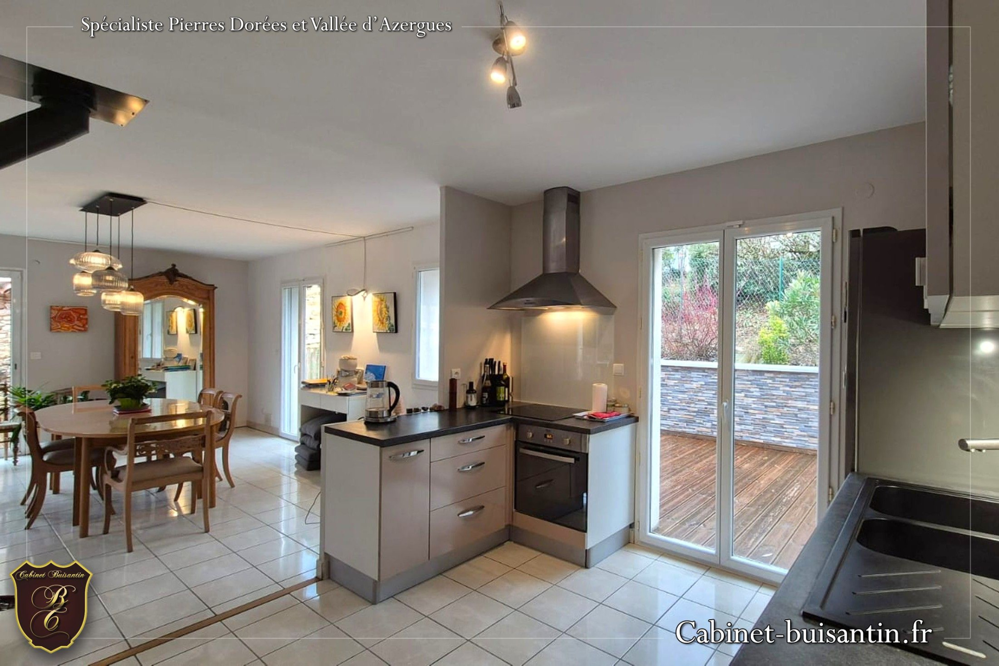 LE BOIS D'OINGT - Idéalement située à proximité des commerces et commodités (écoles, collèges, arrêt de bus...) du centre village, cette villa de 2008 propose 110 m2 habitables. Elle comprend au rez-de-chaussée, entrée avec rangement, cuisine équipée ouverte sur le séjour avec poêle à bois d'environ 50 m2, buanderie, wc. A l'étage, 3 chambres dont 1 de 18 m2 avec espace bureau, salle de bains (baignoire +douche), wc. Un abri jardin, un garage à moto/velos et une grande terrasse complètent ce bien. Le tout sur un terrain arboré de 371 m2. Maison lumineuse et en parfait état.