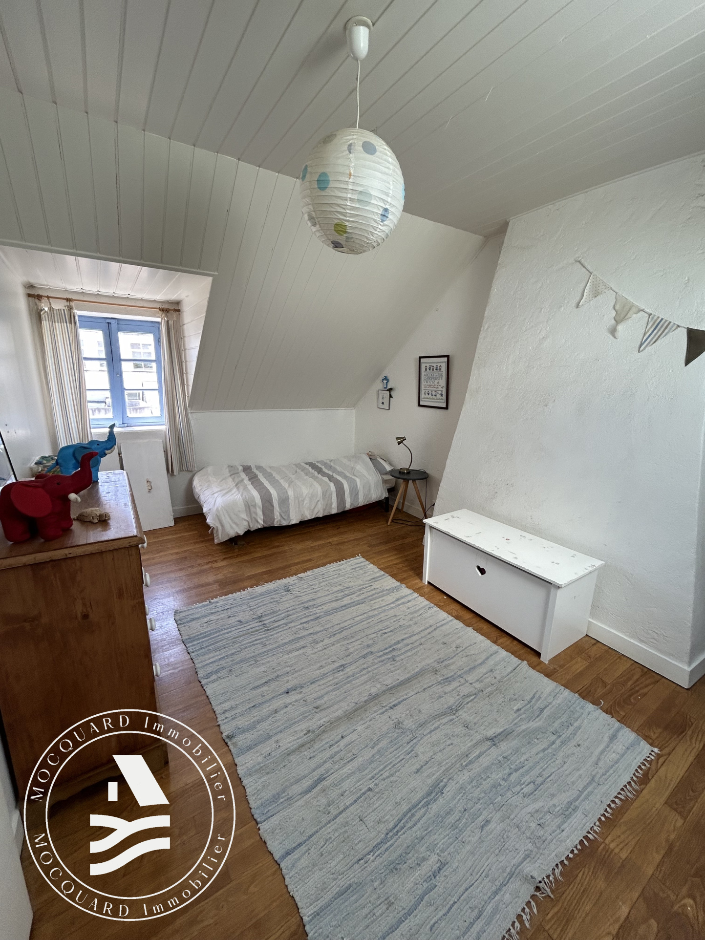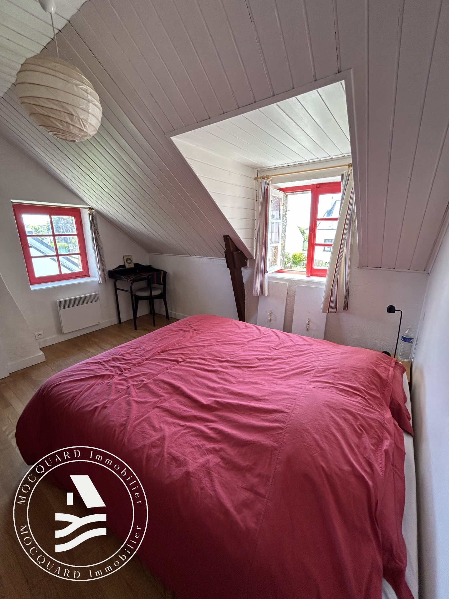 À l'étage, deux jolies chambres mansardées vous accueillent pour des nuits paisibles, accompagnées d'une salle de bain et d'une mezzanine baignée de lumière, parfaite pour lire, télétravailler ou improviser une chambre d'appoint.