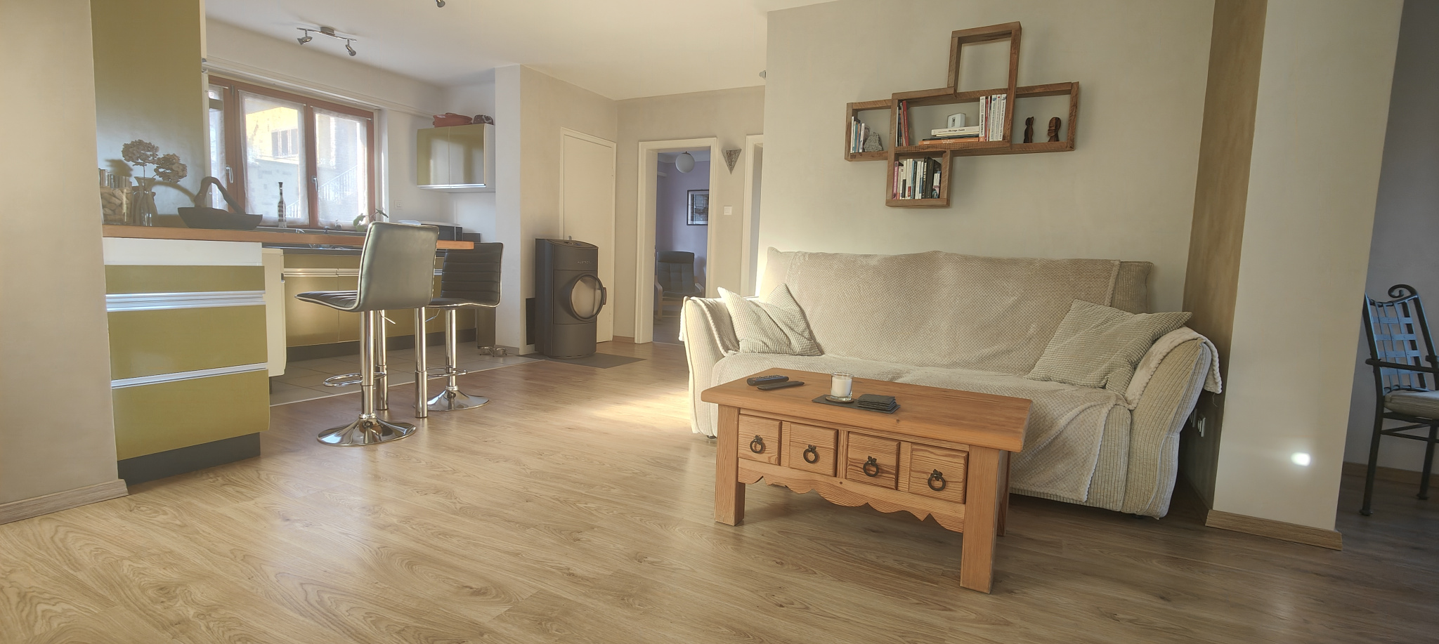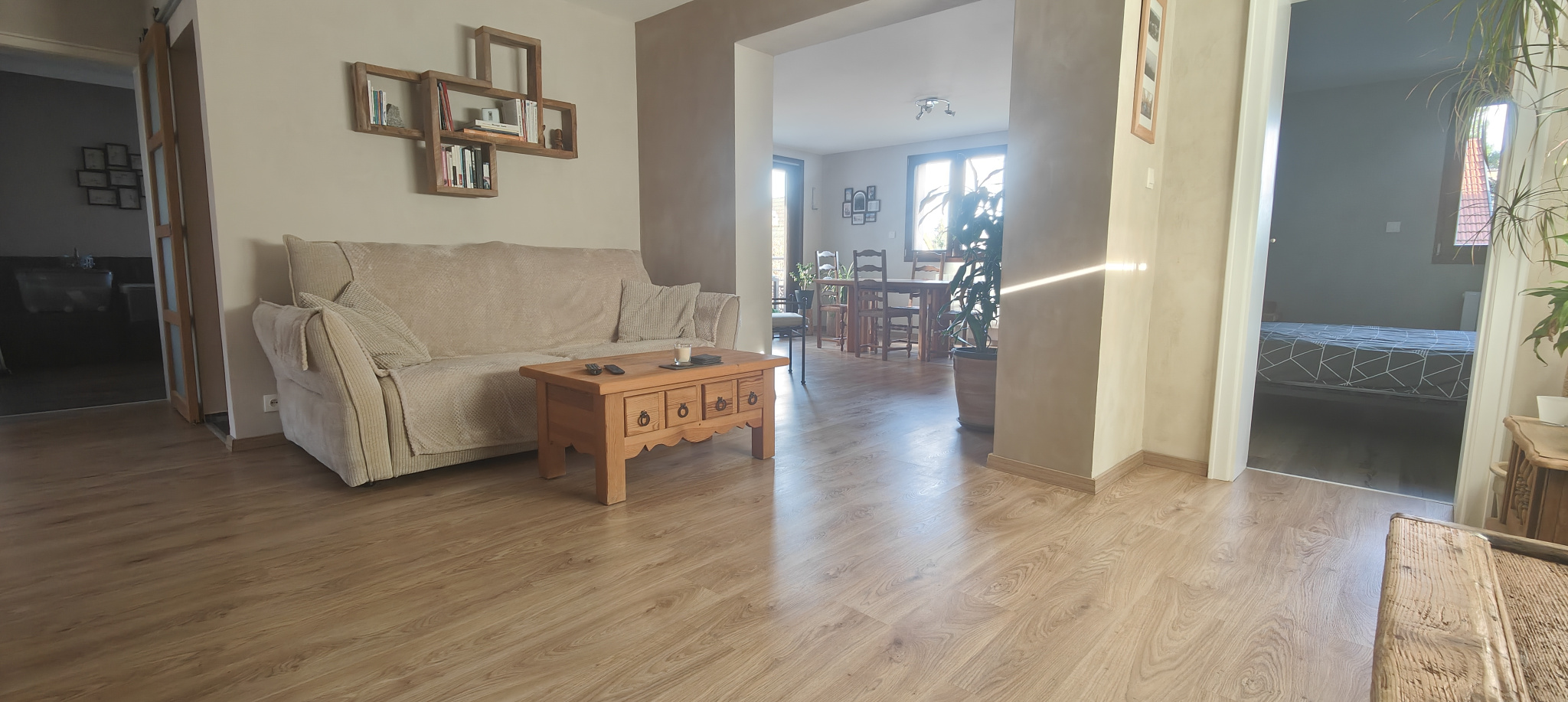 Cette superbe maison individuelle, offrant environ 97 m2 de surface habitable, a bénéficié d'une rénovation complète et soignée, réalisée progressivement de 2013 à aujourd'hui. L'ensemble combine avec succès le charme d'une construction traditionnelle des années 60 et la modernité d'une extension en ossature bois de haute qualité, ajoutée en 2019.