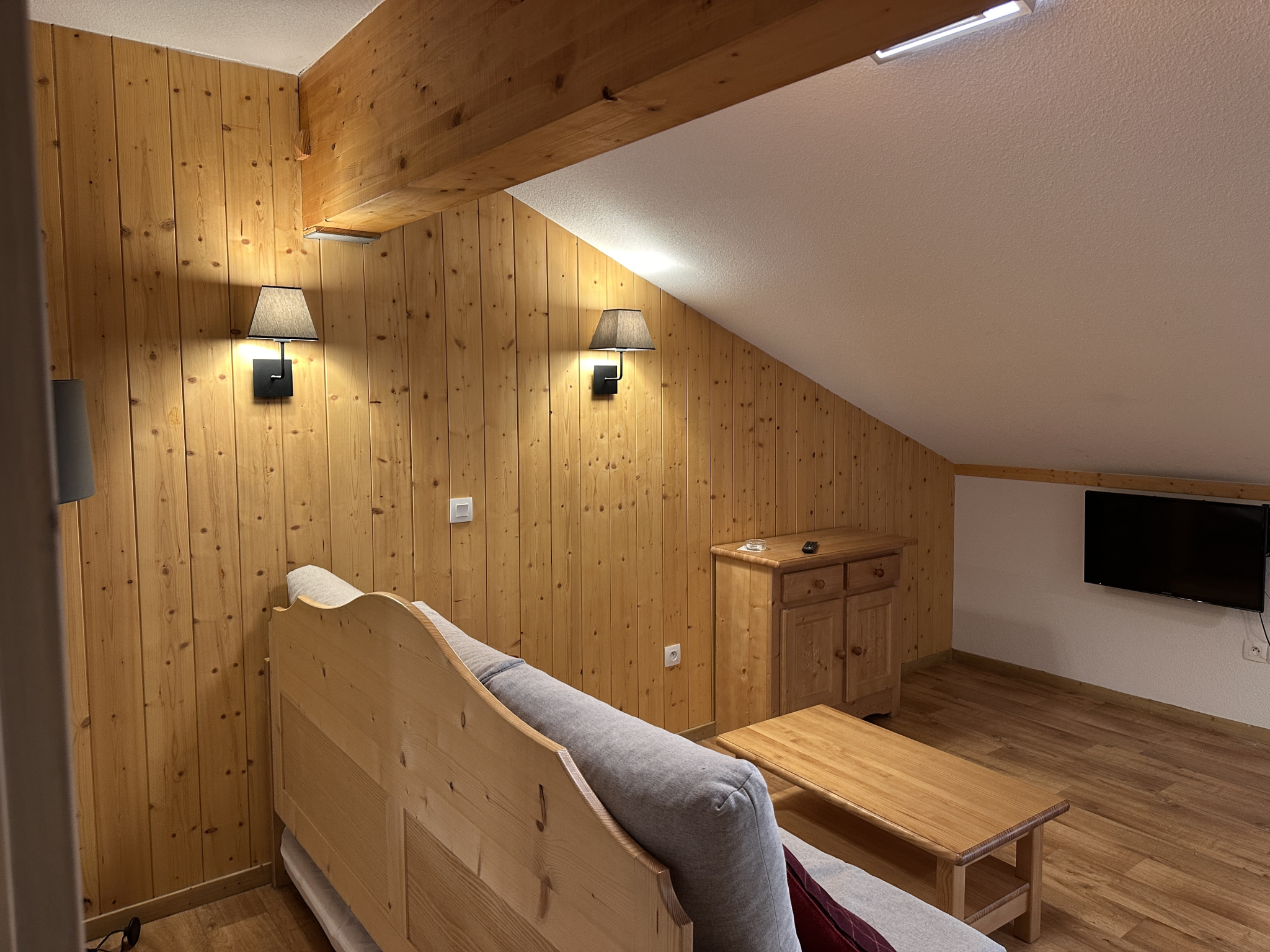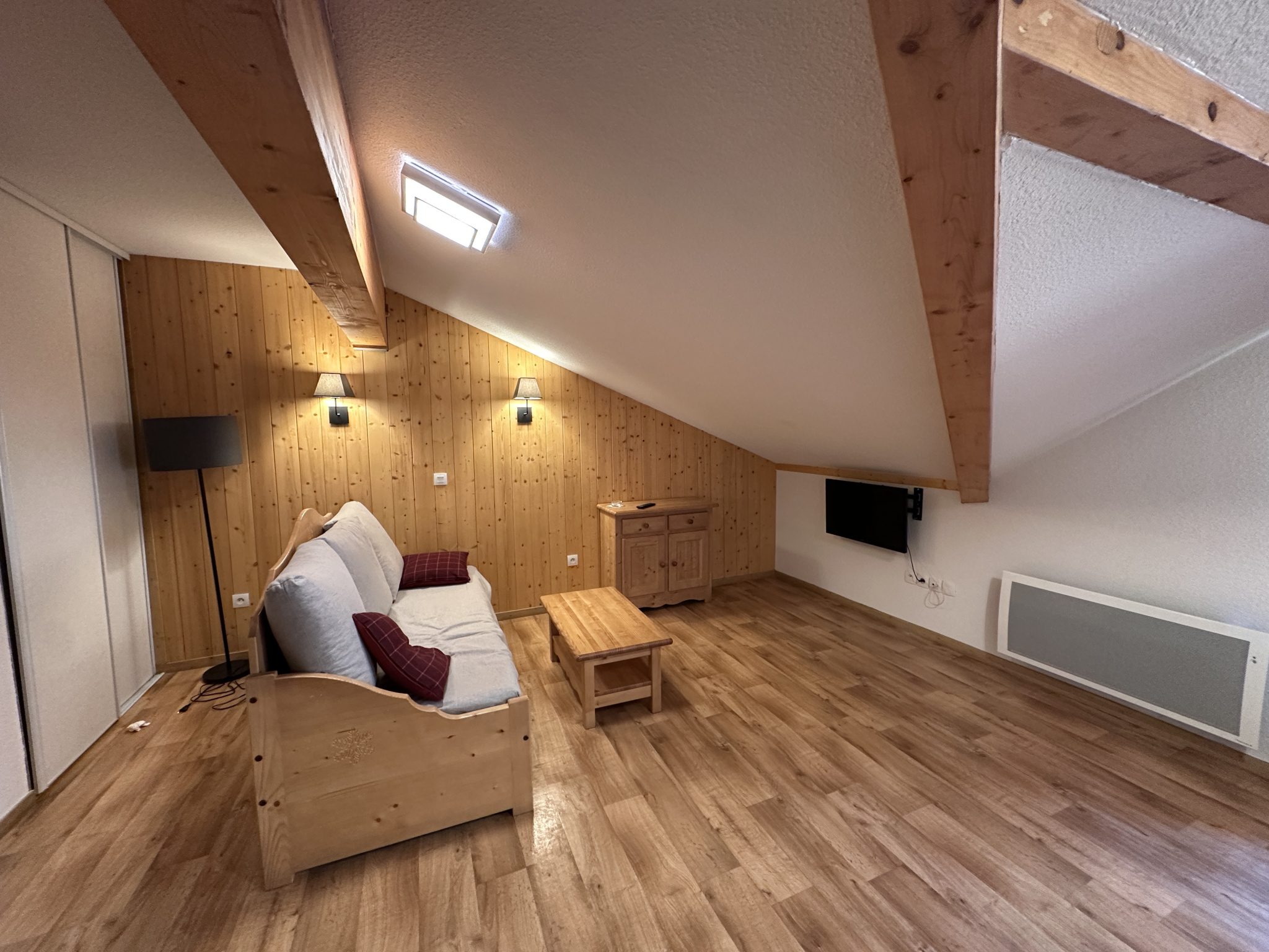 L'appartement comprend une entrée, une alcôve avec un lit superposé, une salle de bains, un Wc séparé, une séjour avec cuisine donnant sur un balcon expositon Est. Un casier à skis situé au RDC de la résidence vous permettra de déposer vos skis.