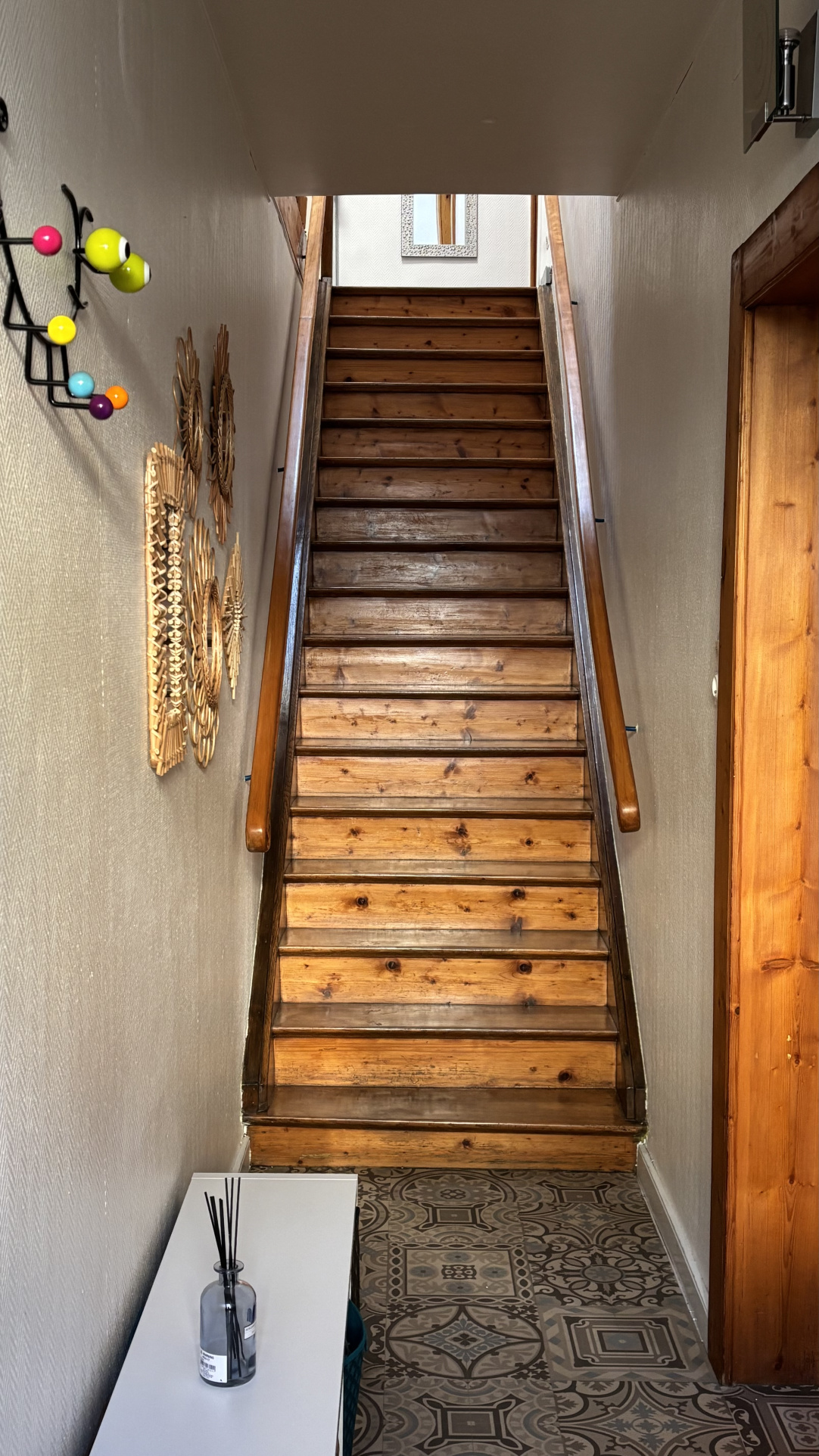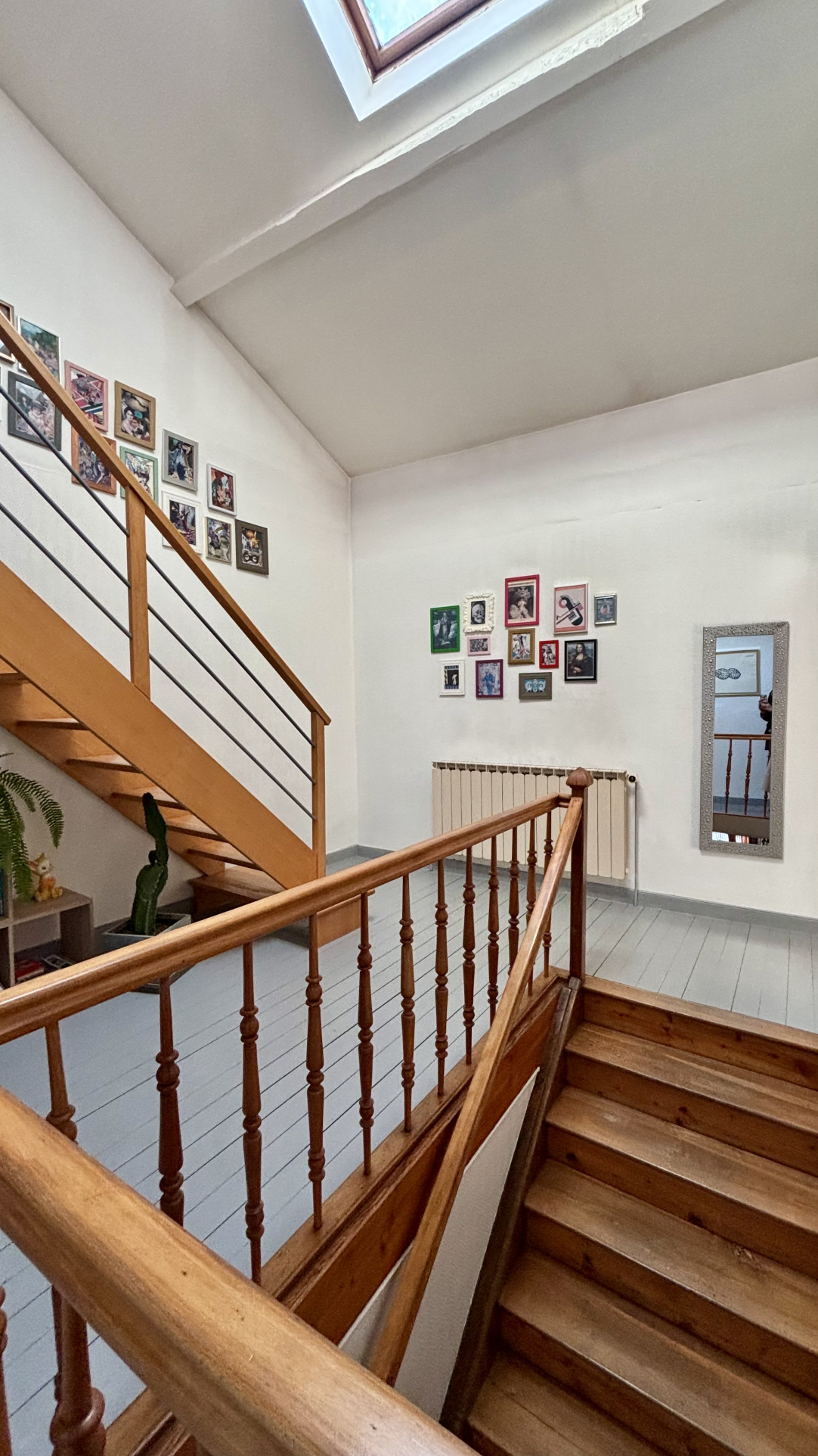 1er étage : un palier spacieux et lumineux, une vaste salle de bains avec WC, deux chambres baignées de lumière.