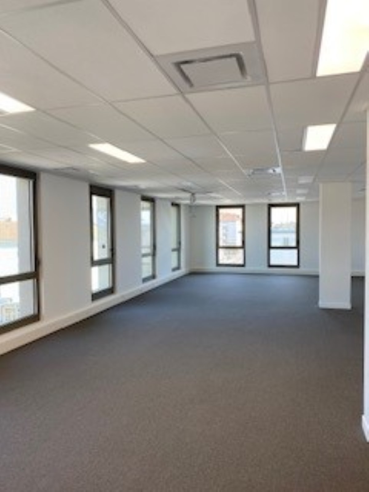 2 immeubles neufs certifiés BREEAM Very Good proposés à la location (bâtiment B) et à la vente (bâtiment A), liés par un patio paysager et situé au coeur du projet urbain D-Side.