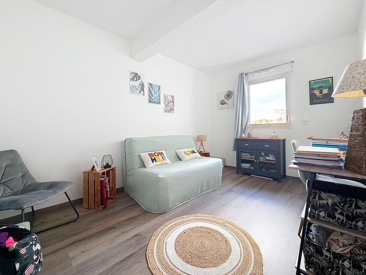 Il se compose d'une pièce de vie lumineuse ouverte sur un balcon agréable, d'une cuisine aménagée et entièrement équipée, de deux chambres avec rangements, ainsi que d'une salle d'eau moderne.
