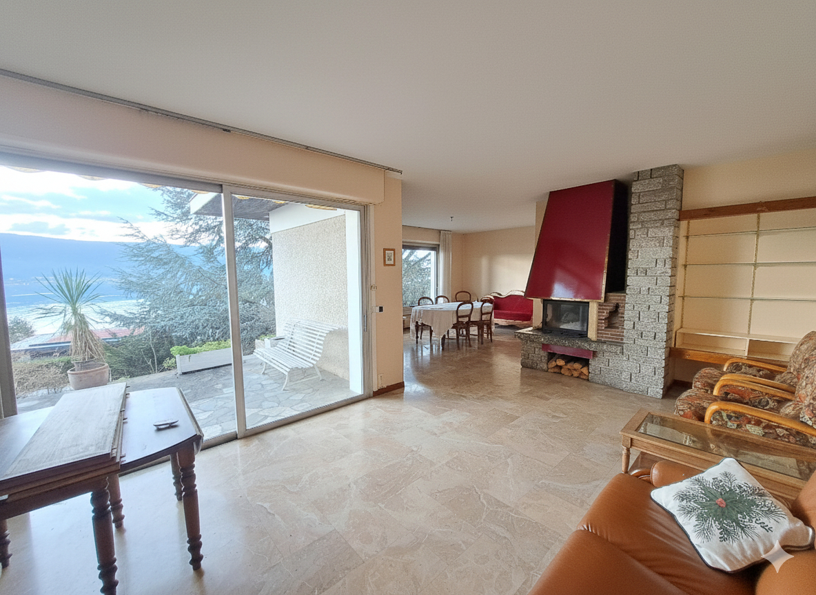 Situé à VEYRIER DU LAC, à proximité du centre bourg accessible à pieds avec ses commerces et commodités et bénéficiant d'un accès rapide au lac à pieds, belle maison cossue des années 70 bénéficiant d'une très belle vue sur le lac et les montagnes depuis l'intérieur et l'extérieur de la maison. Vous aurez plaisir à rénover cette maison comprenant un niveau de 135 m2 habitable composé des pièces de vie , de trois chambres plus bureau. Un sous sol complet de même surface comprenant également un studio indépendant d'environ 30 m2 habitable bénéficiant lui aussi de la vue.