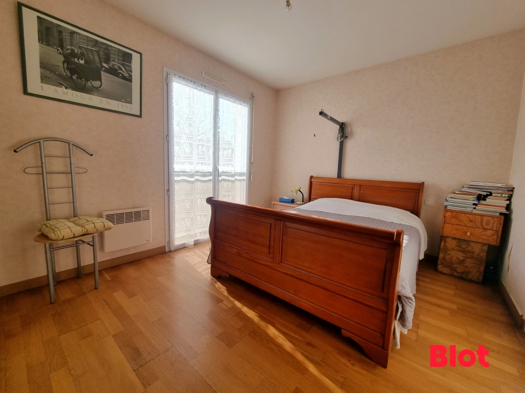 À l'étage, l'espace nuit comprend deux chambres avec chacune un placard, un bureau idéal pour le télétravail, une salle de bains, et des WC séparés.
