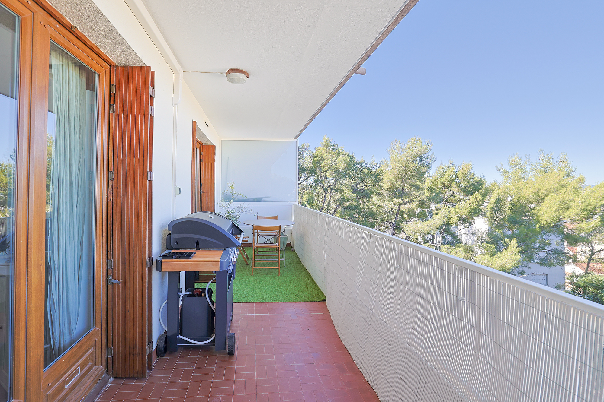 PRESTATIONS : Cuisine aménagée et équipée, salle d'eau aménagée et équipée, huisseries PVC avec double vitrage, volets bois, chauffage collectif au gaz, climatisation réversible (2025) dans toutes les pièces, chauffe-eau électrique plat connecté 80 L (2023), visiophone, fibre internet, eau de ville, tout à l'égout.