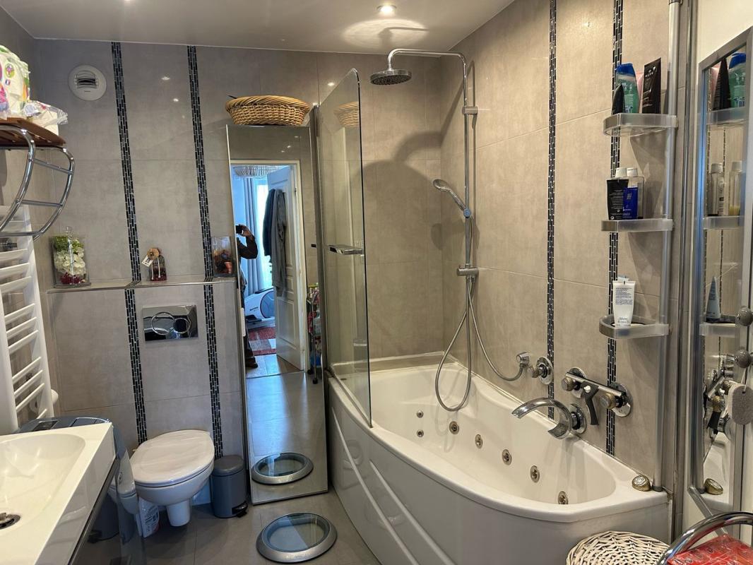 Trois chambres, dont une suite parentale de 19,48m², avec penderie, salle de bain avec jacuzzi et toilettes, salle d'eau supplémentaire indépendante avec toilettes, toilettes pour invités à l'entrée.