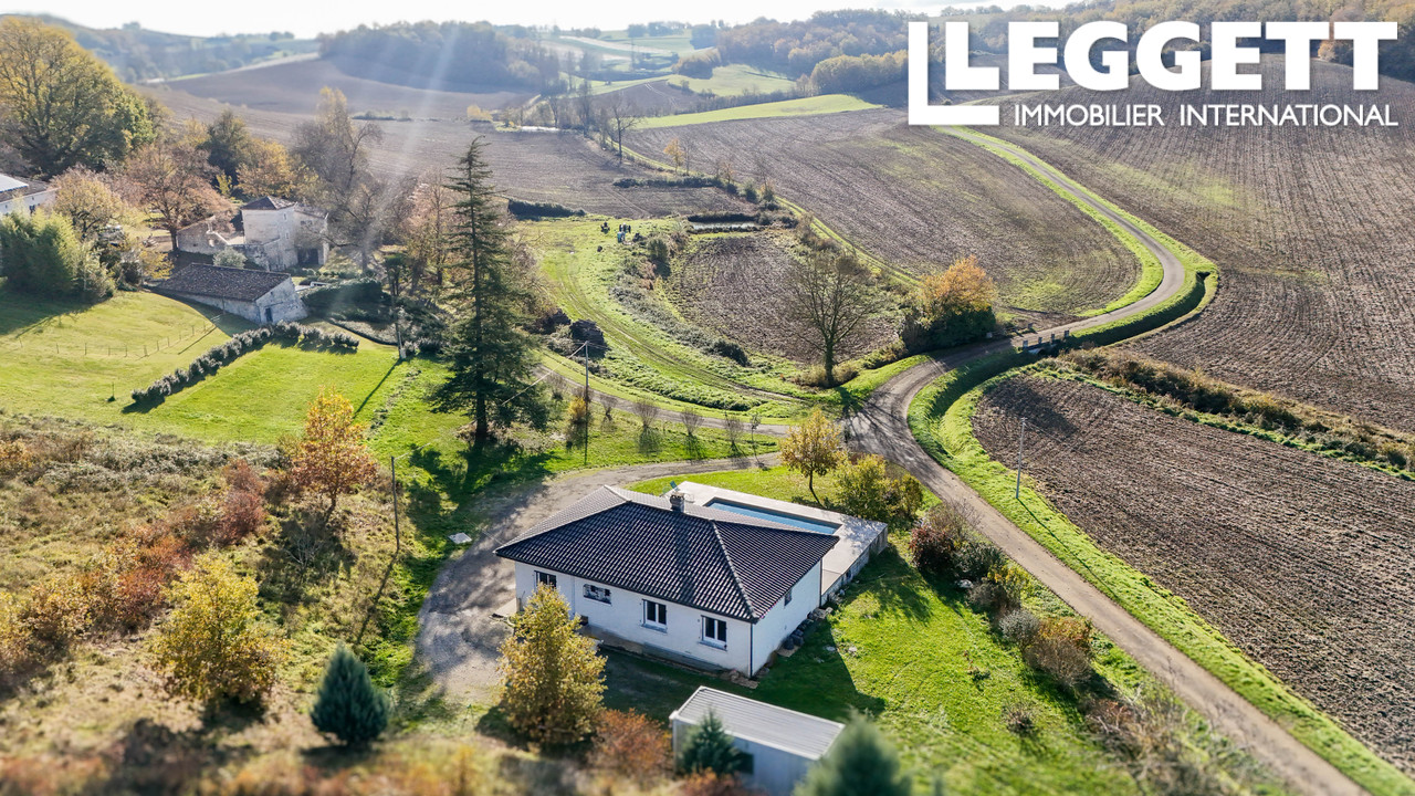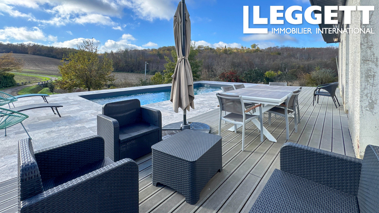 A41420NK82 - À seulement quelques minutes du village de Cazes-Mondenard et de toutes ses commodités, cette maison de plain-pied de 4 chambres offre un cadre de vie facile au coeur des magnifiques collines du Quercy Blanc, dans le Tarn-et-Garonne. Construite dans les années '80 et rénovée avec goût, elle bénéficie du double vitrage, d'une bonne isolation, d'un poêle à granulés avec distribution de chaleur et de radiateurs électriques. La lumineuse cuisine ouverte et le vaste séjour s'ouvrent sur une grande terrasse exposée sud avec une piscine au sel et une vue dégagée -- idéale pour une vie de famille ou une résidence secondaire. Les quatre chambres sont de plain-pied, dont trois avec placards intégrés et une avec accès direct à la terrasse. Volets roulants solaires, buanderie et beaux extérieurs complètent l'ensemble. Quelques finitions décoratives restent à personnaliser.