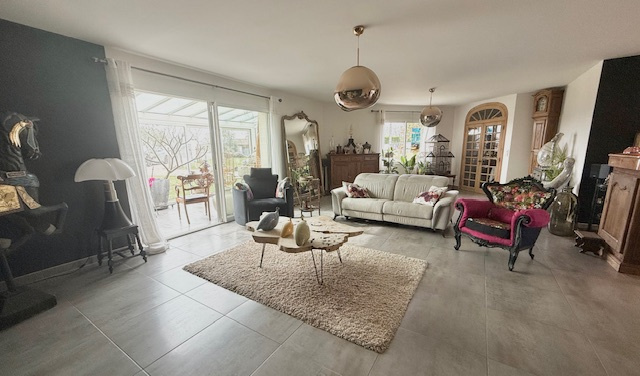 Un triple garage dont les portails sont automatiques avec un espace couvert, complètent cet ensemble.