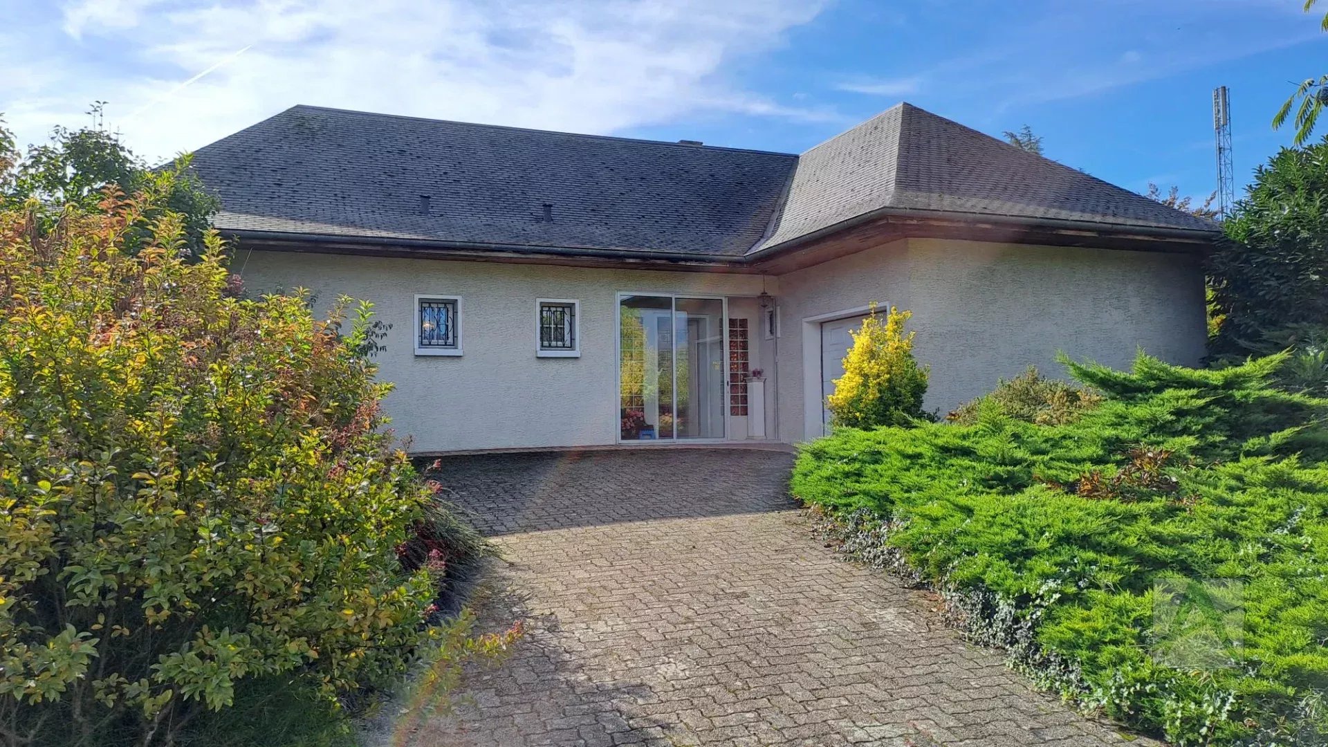 COGNIN, centre - Au bout d'une impasse, nous vous proposons cette maison de plain-pied de 105 m² habitable comprenant hall d'entrée, séjour-salon avec cheminée, cuisine indépendante, 3 chambres, salle de bains, wc. Grande terrasse exposée Sud/Est. A l'étage, vaste combles aménageables dont 1 partie à déjà été aménagée en atelier.