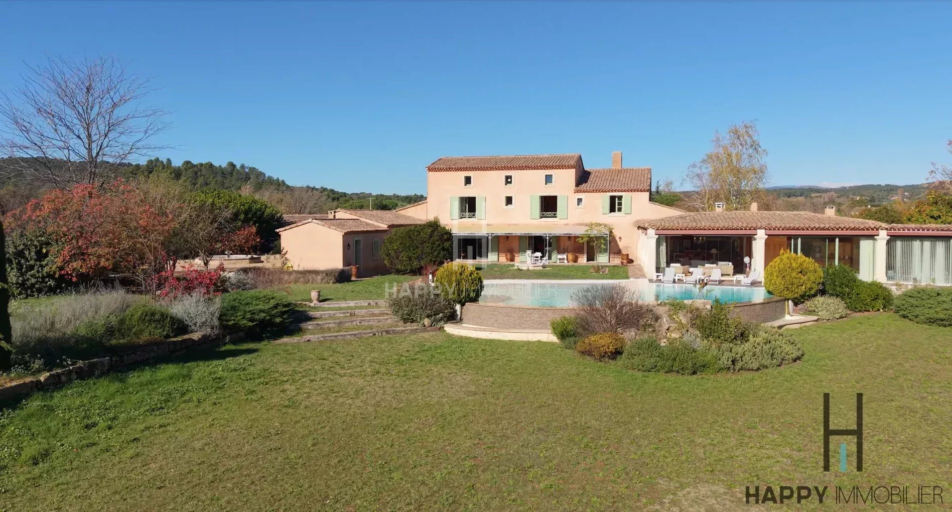 A l'origine un Mas de 1840 ou aujourd'hui La demeure principale développe 420 m² et se compose de 10 pièces, dont un vaste séjour-salle à manger de 36 m², un salon bibliothèque avec cheminée de 66 m², ainsi que 7 chambres, 5 salles d'eau ou bain, bureau.