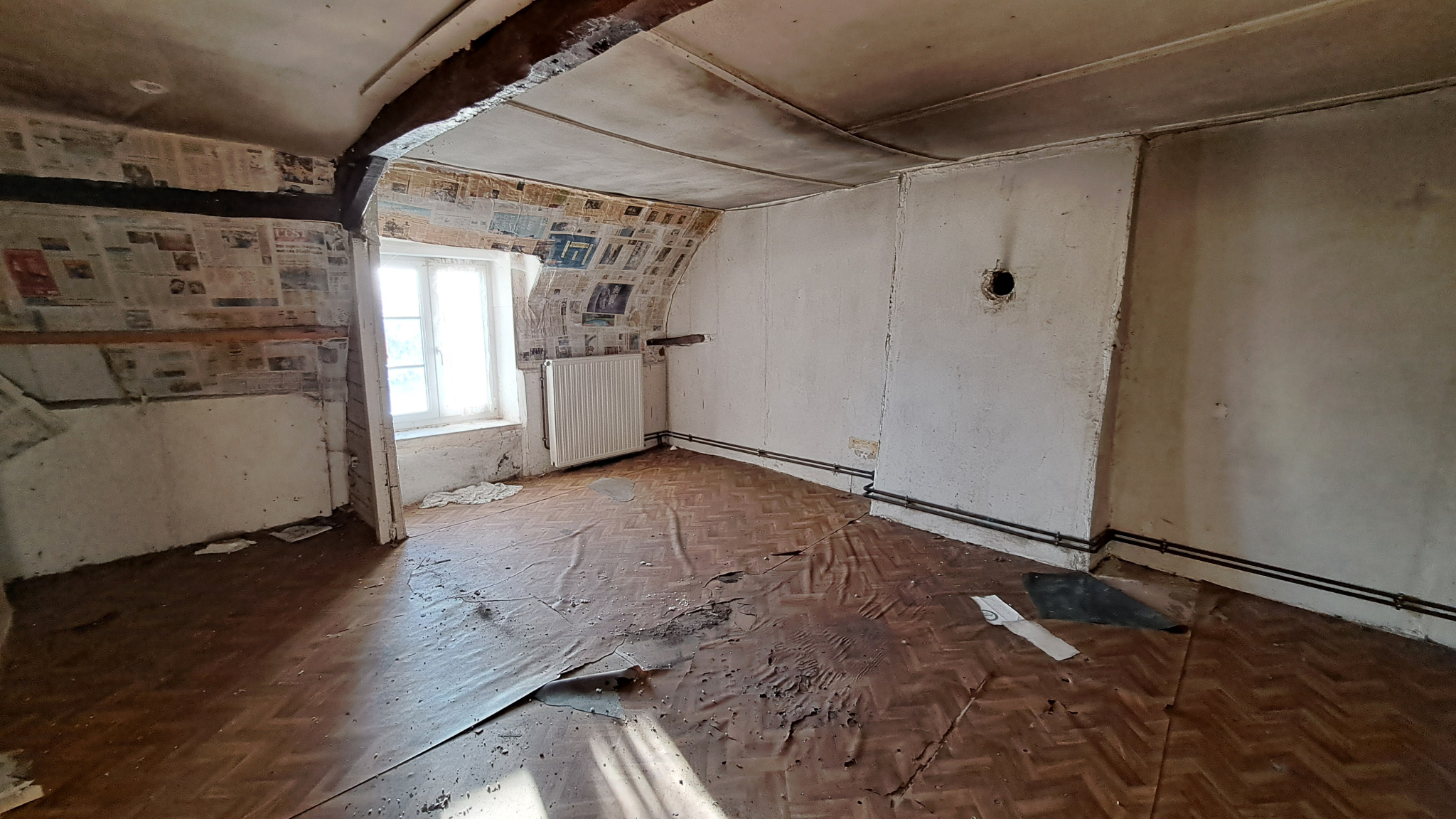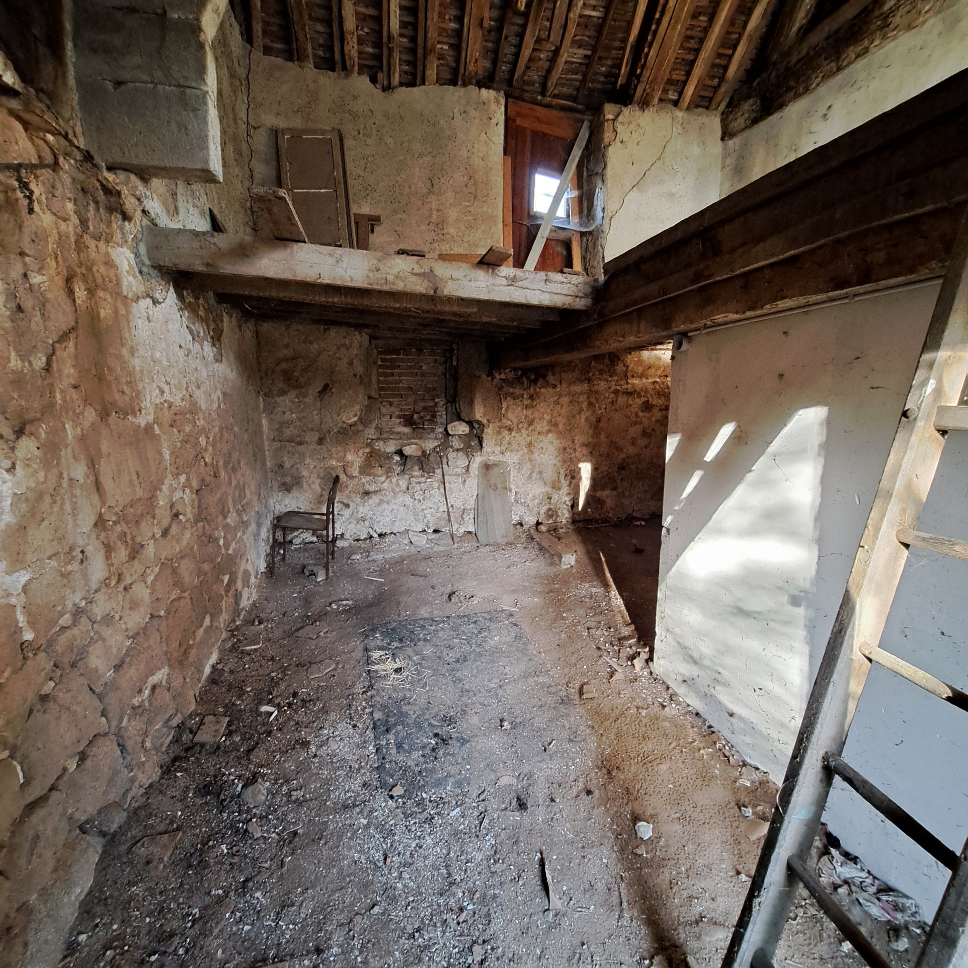 - au rez-de-chaussée : une cuisine, un salon-séjour avec une belle cheminée en pierres, une salle d'eau avec wc.