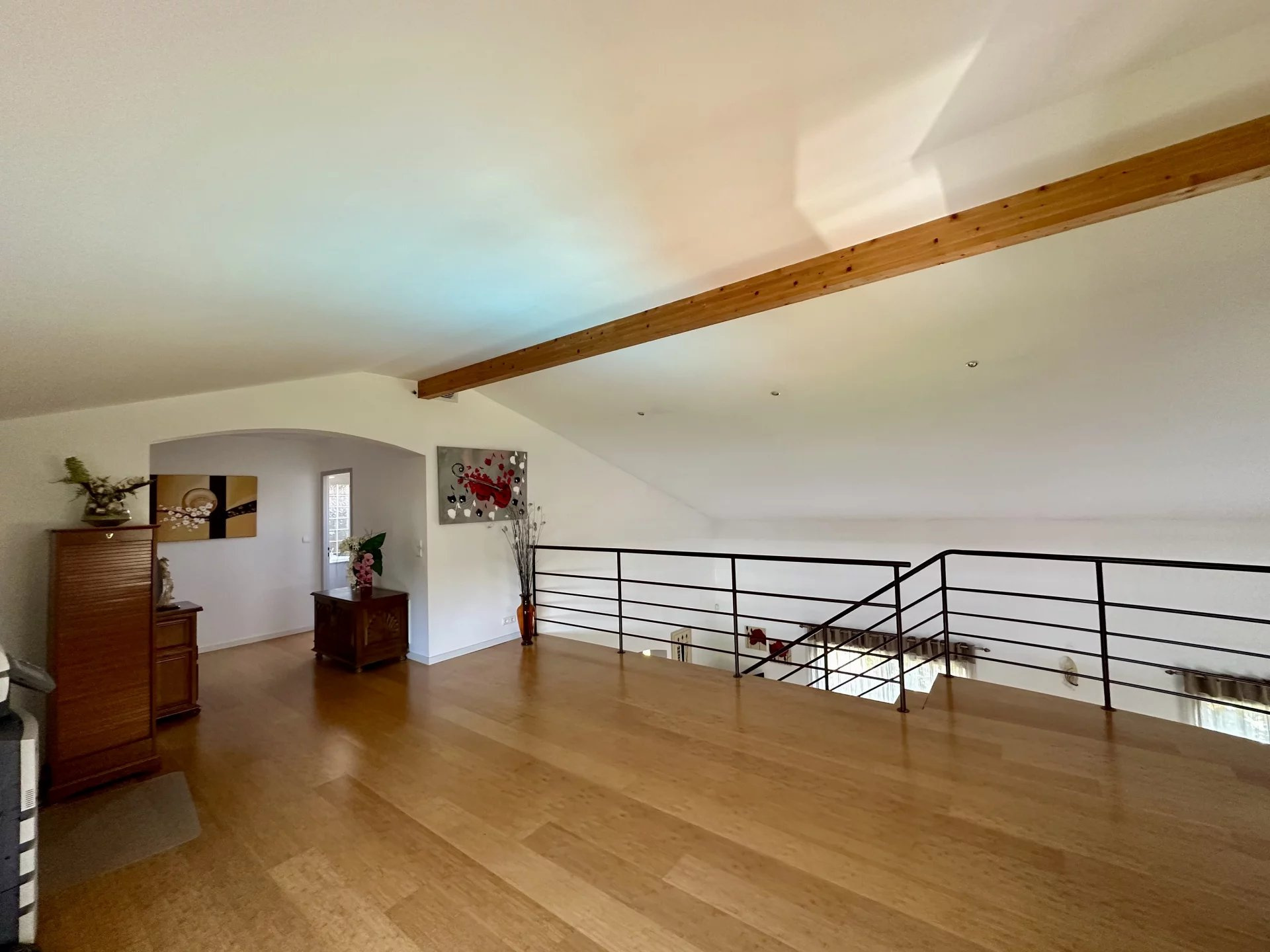L'espace nuit offre une chambre parentale avec dressing, une grande salle de bains de plus de 10m2 avec douche et baignoire, une chambre d'amis et un bureau. À l'étage, une mezzanine de près de 30m2 avec parquet massif peut servir de salon cocooning, espace bureau, ou encore salle de jeux. Deux autres chambres de 16 et 20m2 avec placards, un WC indépendant et une grande salle d'eau complètent la partie habitable.