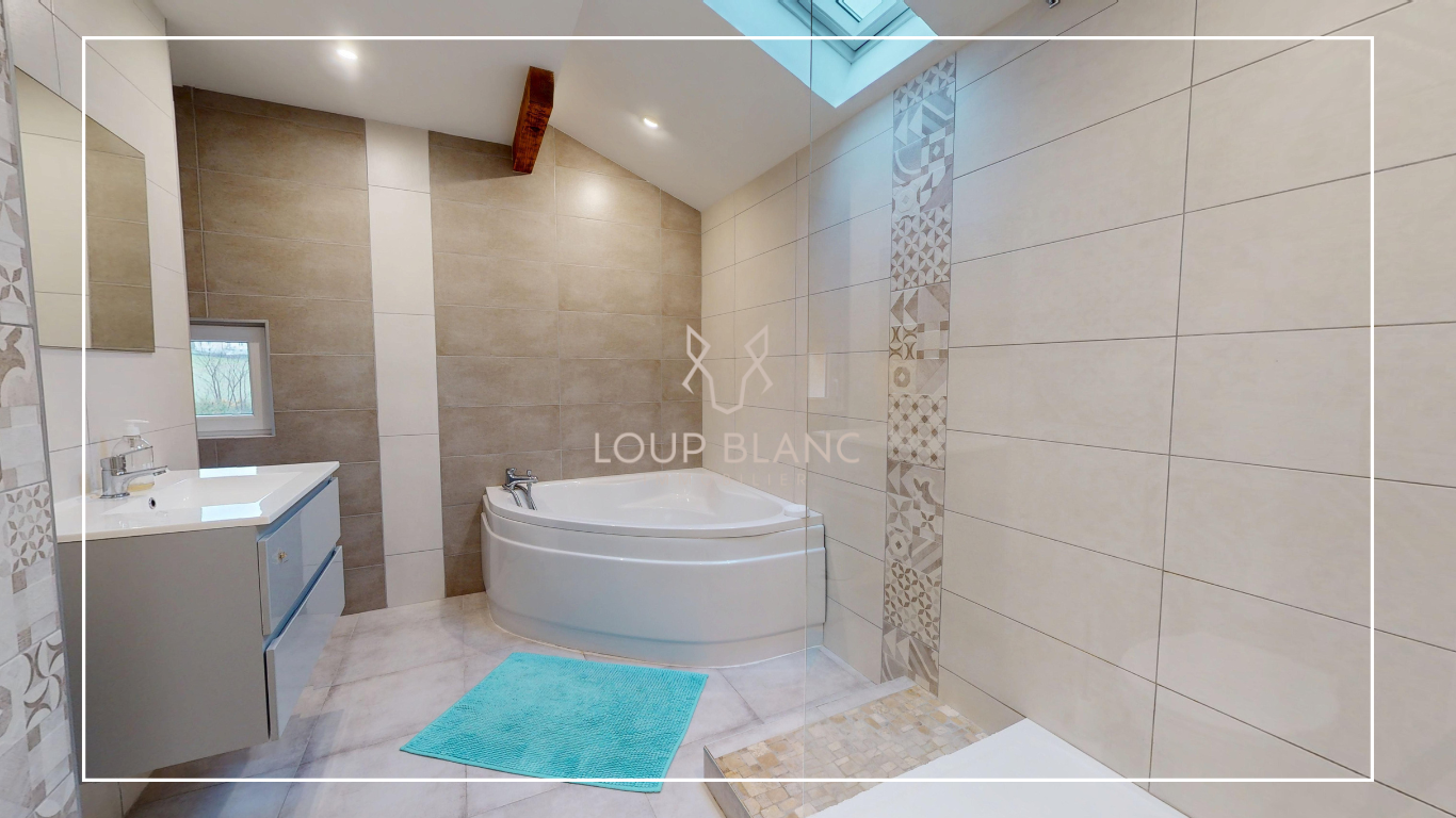 Côté extérieur, vous profiterez d'une cour, d'un terrain de pétanque, d'une piscine semi-enterrée et d'une deuxième terrasse couverte, le tout sur un grand terrain arboré et clôturé.
