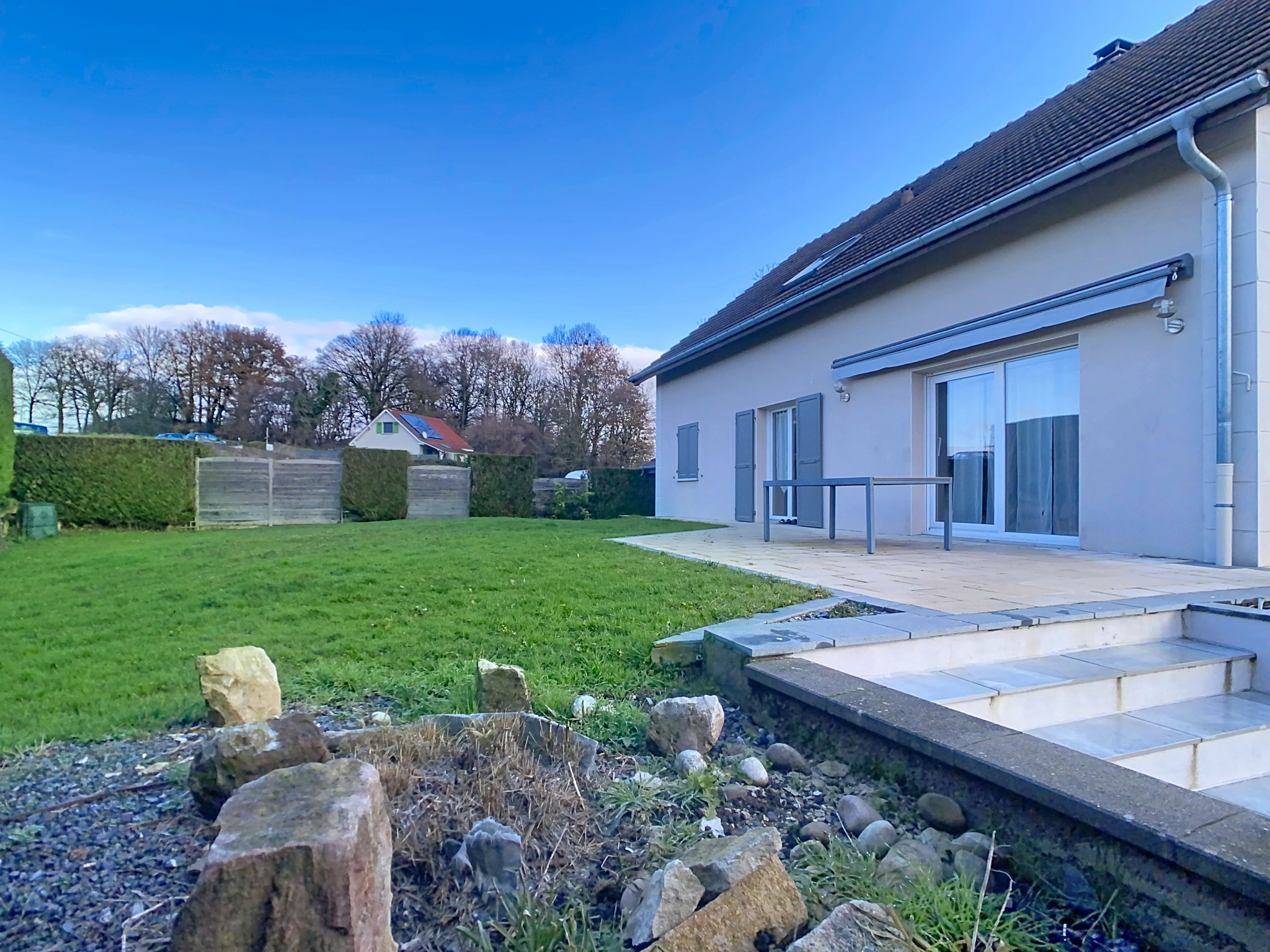 Maison offrant de beaux volumes, fonctionnelle et lumineuse. Située au calme, à mi-chemin entre Delle et Seppois, et à proximité immédiate de la frontière Suisse.