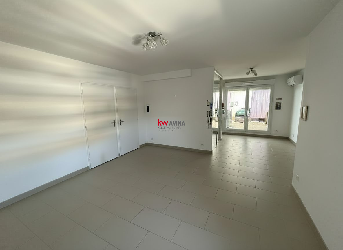 L'espace de vie de 44 m2 s'ouvre sur l'extérieur grâce à de larges baies vitrées donnant accès à une terrasse sans vis-à-vis, idéale pour recevoir, déjeuner en plein air ou créer un jardin suspendu.