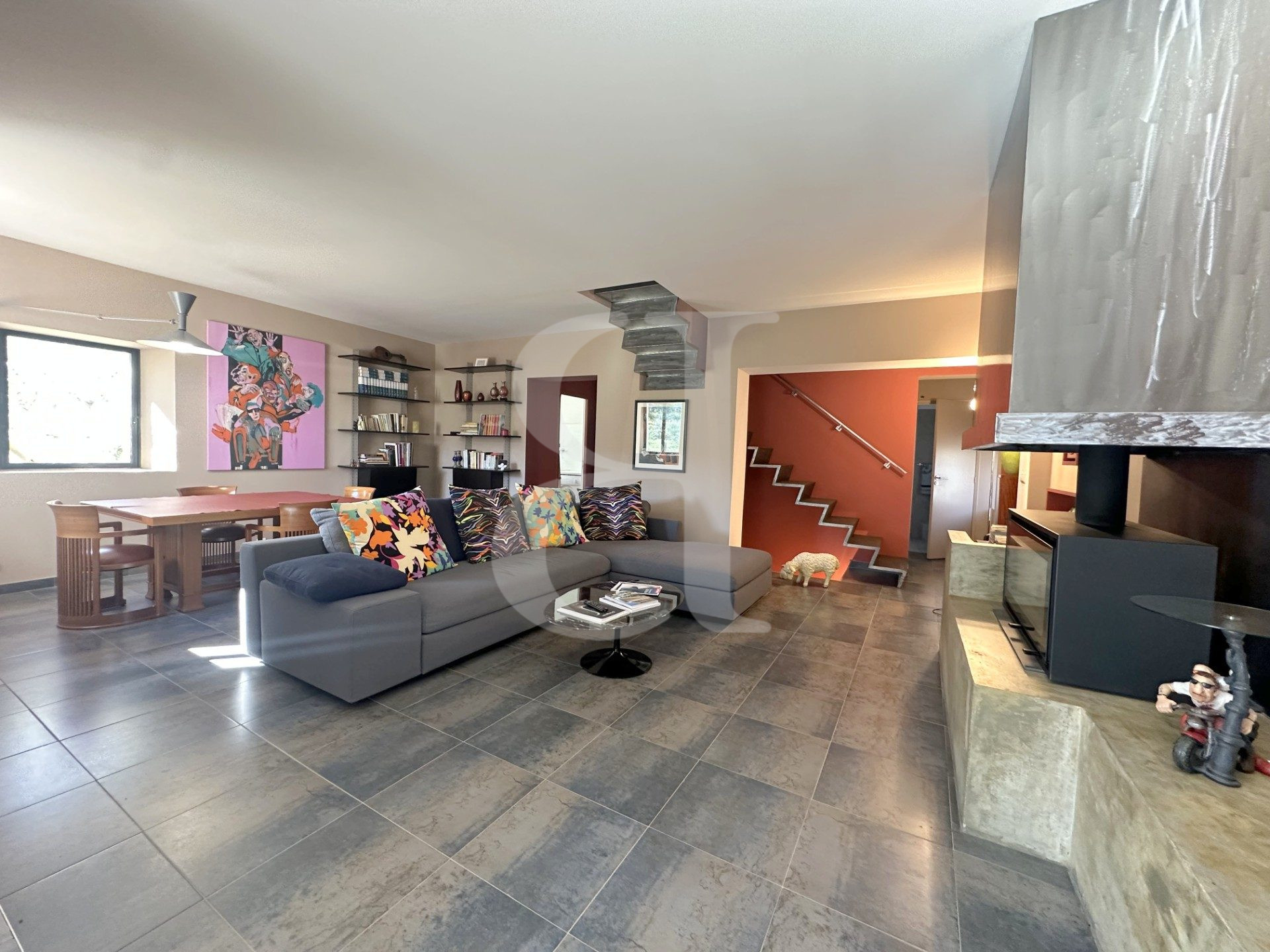 Salon avec cheminée avec insert 35 m²