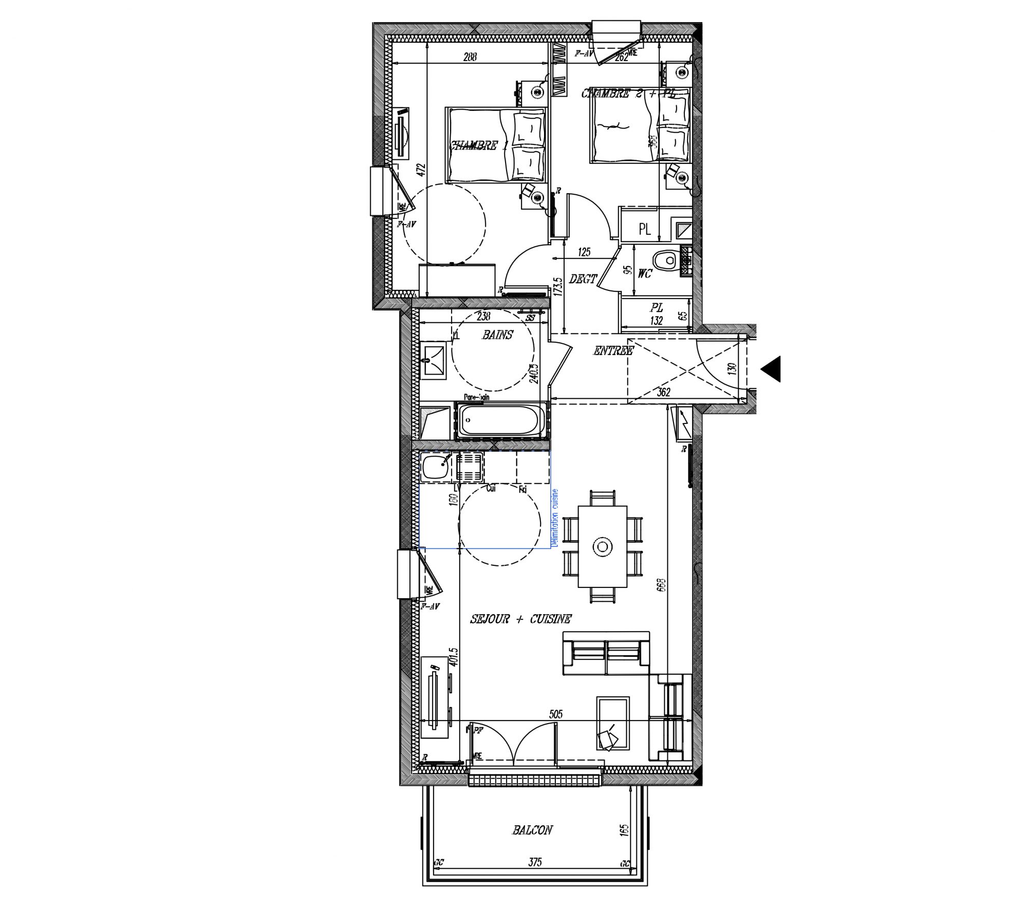 Spacieux T3 exposé sud ouest de 68m2 comprenant :