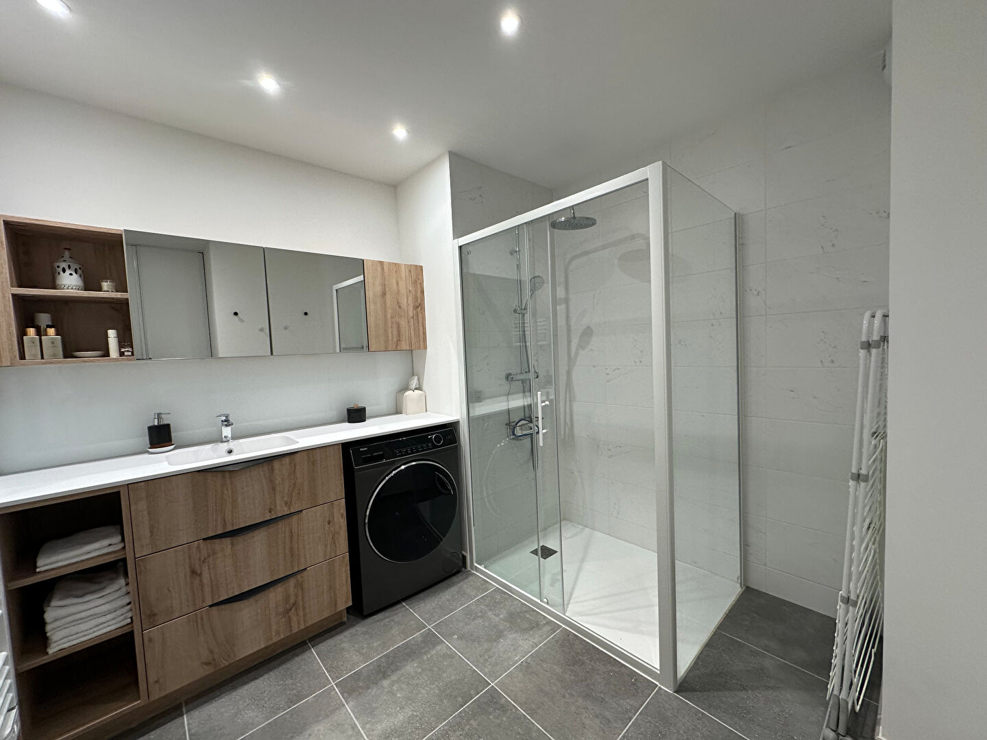 Jeanne d'Arc Immo vous propose à la vente un beau T3 en parfait état quartier St André à Mont Saint Aignan, dans une résidence récente, au 1er étage pour 76.86m² avec Ascenseur, comprenant entrée avec rangement, belle cuisine ouverte sur séjour avec grande terrasse sans vis à vis, WC, 2 chambres, un dressing, salle d'eau.