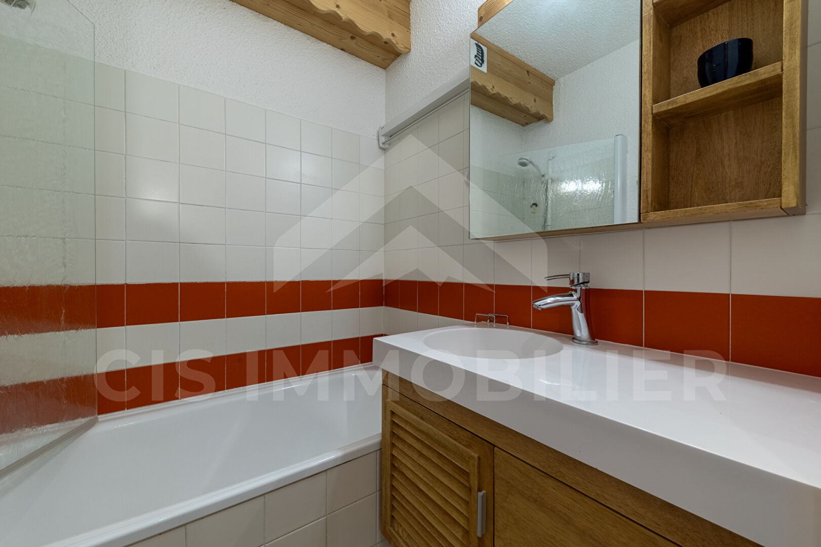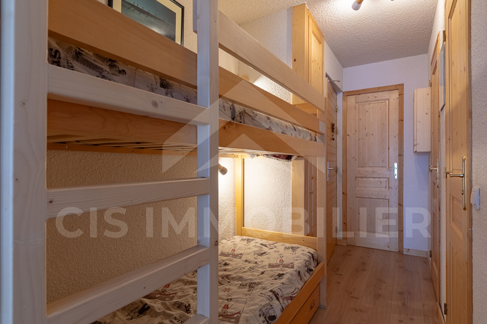 Exclusivité. Mottaret. skis aux pieds. Appartement idéal pour une famille de 4 personnes. Il comprend un séjour avec cuisine ouverte équipée, 1 chambre double avec rangements, 1 coin montagne avec 2 lits superposés, 1 salle de bains et 1 WC indépendant. Cave et casier à skis. Possibilité de parking couvert sous la résidence.