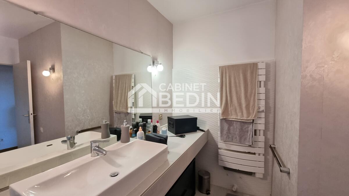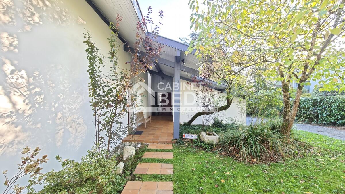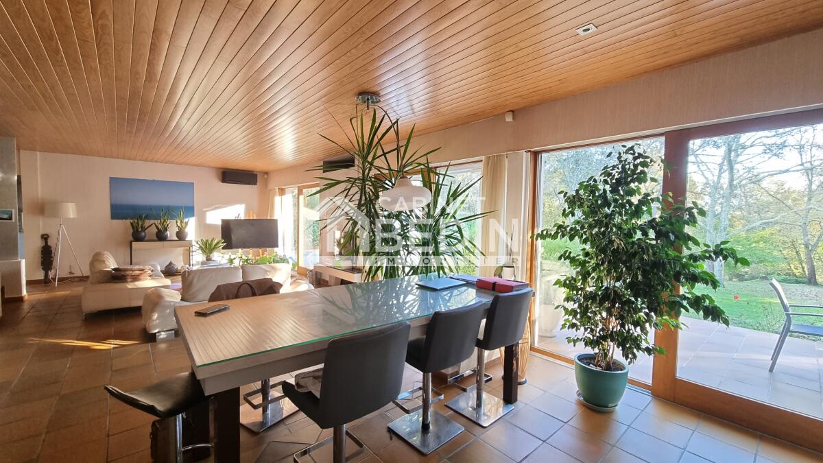 Exclusivité CABINET BEDIN - HEUGAS. HEUGAS, coup de coeur assuré pour cette maison d'architecte nichée dans un écrin de verdure. Elle se divise en 2 logements une maison de cinq pièces et un appartement de deux pièces. La maison se compose d'une entrée, un vaste séjour avec cuisine ouverte de 50m2 environ, trois chambres, un bureau, une salle d'eau, deux WC séparés, un cellier, un atelier, une terrasse sans vis-à-vis avec piscine. De nombreux rangements viennent compléter ce bien ainsi qu'abri voitures. Prestations de qualités menuiseries sur mesure en bois exotique. Un appartement de deux pièces de 52m2 environ se rajoute, idéal pour profession libérale ou pour accueillir un membre de la famille qui peut avoir son indépendance. Un rafraichissement est à prévoir pour l'appartement. Le tout sur un terrain arboré et bucolique de 6000m2 environ. Une visite rapide s'impose.