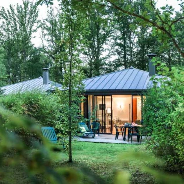 Le domaine des Bois-Francs compte 7 hameaux de logements allant du T1 au cottage 12 personnes, tous entièrement meublés et équipés, avec terrasse donnant sur la forêt et les lacs.