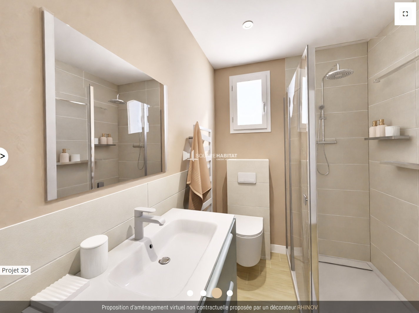 L'espace nuit se compose de trois chambres confortables, dont une suite parentale avec douche, et d'une salle d'eau avec WC. Une mezzanine vient compléter l'ensemble, parfaite pour du stockage ou pour aménager un coin lecture apprécié des enfants.