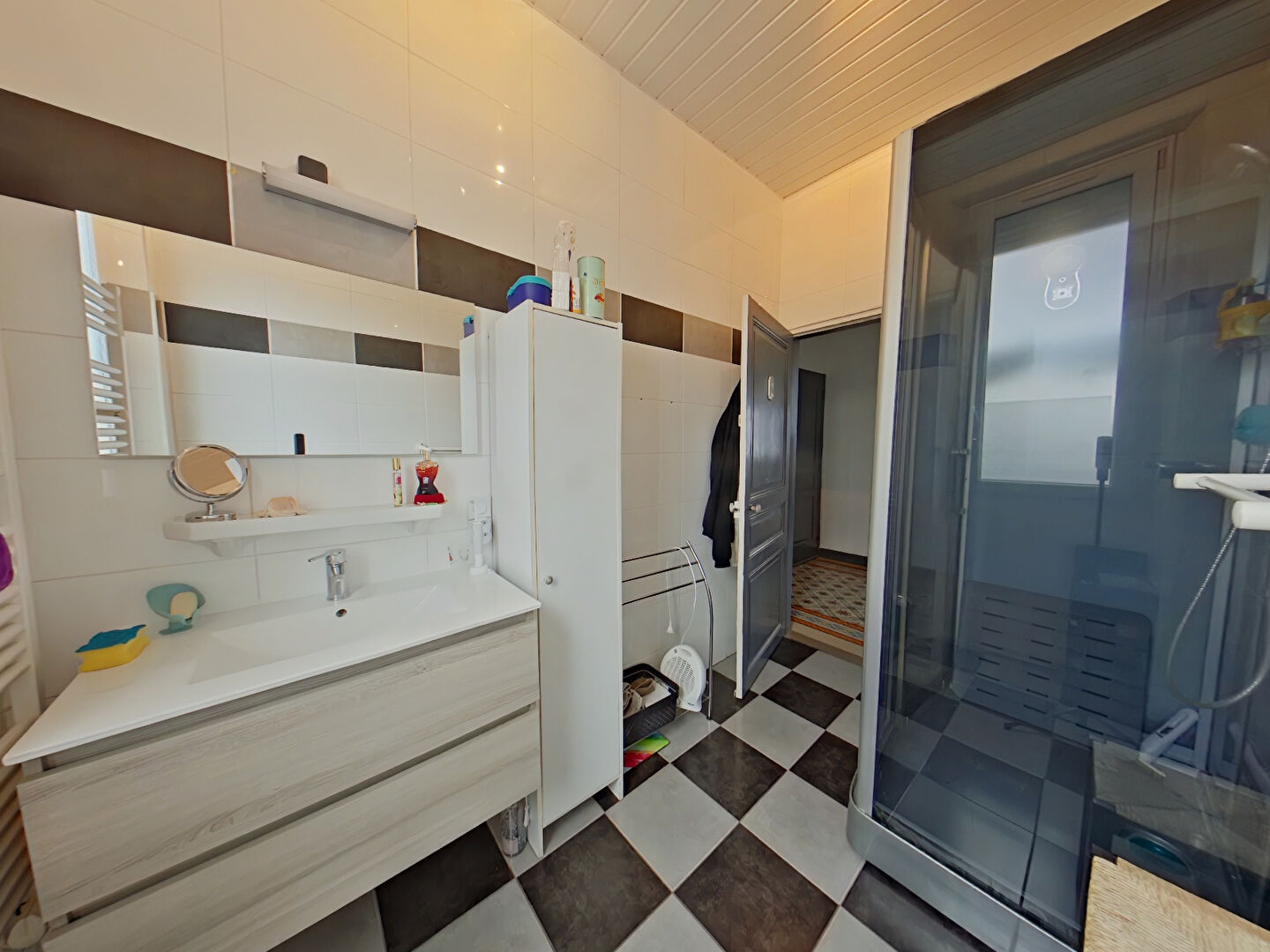 À l'étage, un palier dessert une salle de bains et un bureau. Un second dégagement conduit à trois autres chambres spacieuses, offrant de multiples possibilités d'aménagement.