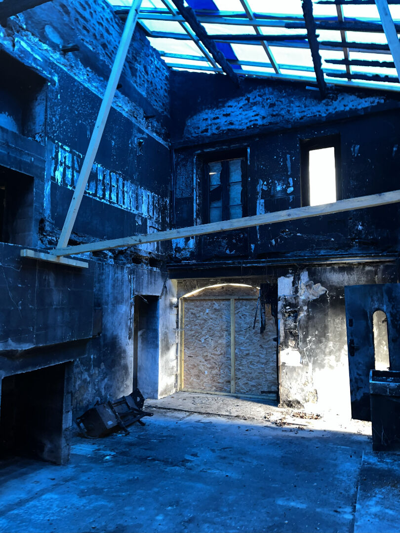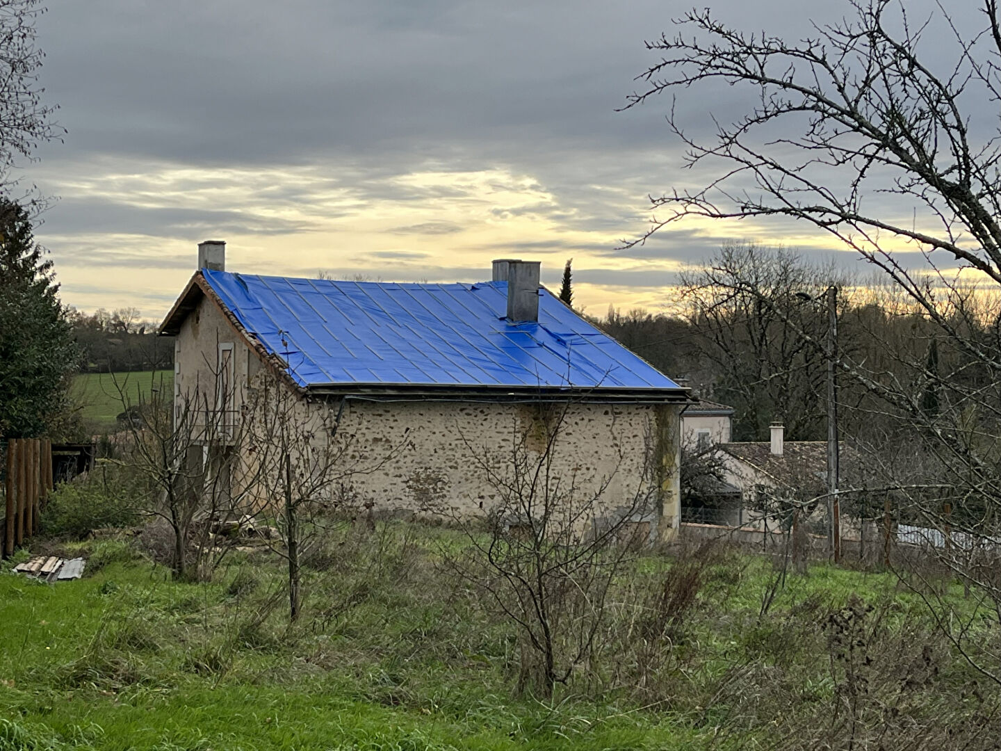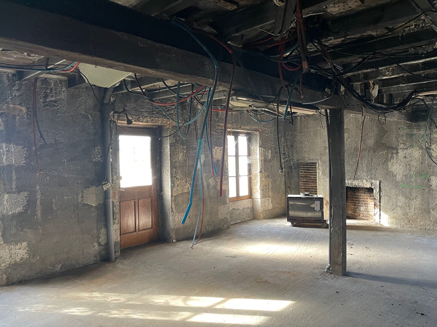 Murs sains, charpente et couverture à reconstruire. Aménagement intérieur à créer.