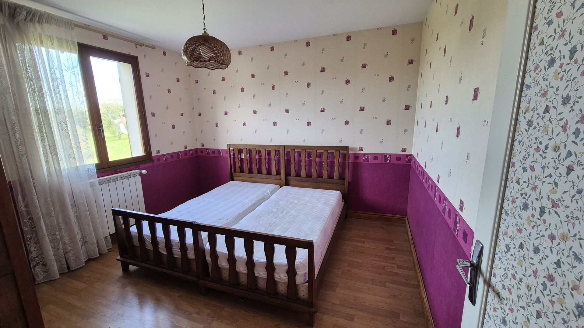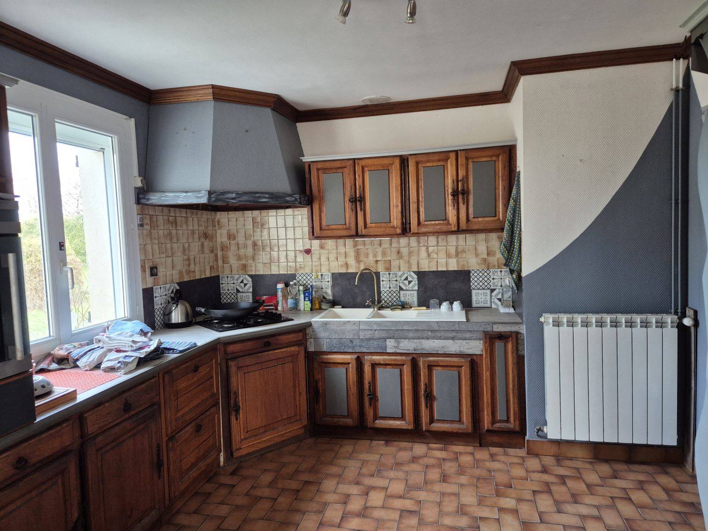 Pièce de vie de 44 m² avec cuisine ouverte, salon, 4 chambres, salle de bains, wc, cellier avec douche.