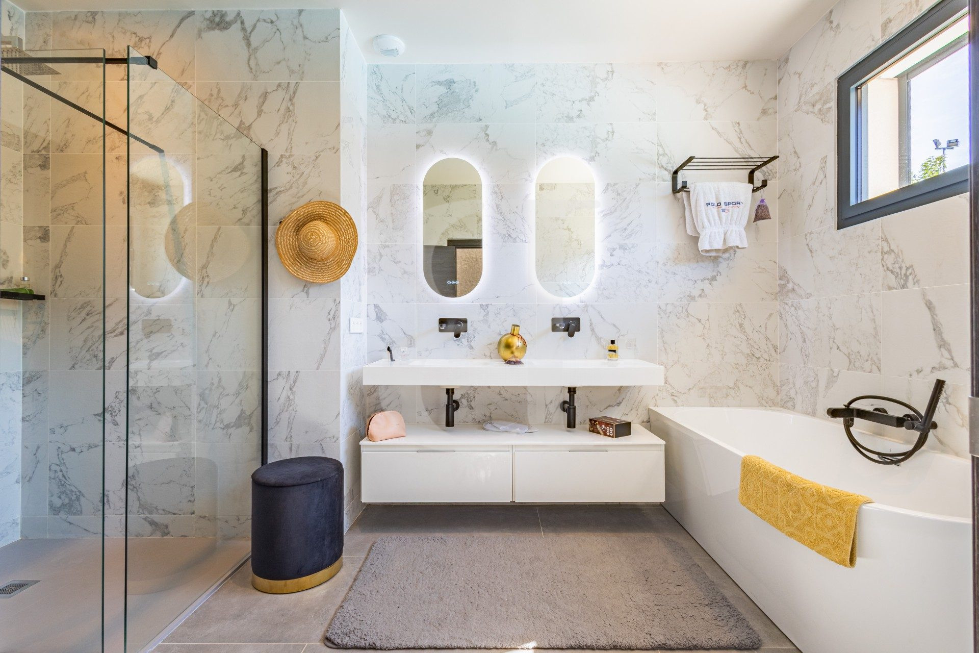 Cette villa est équipée de panneaux solaires et construite selon les dernières normes énergétiques, garantissant confort, performance et économies d'énergie.