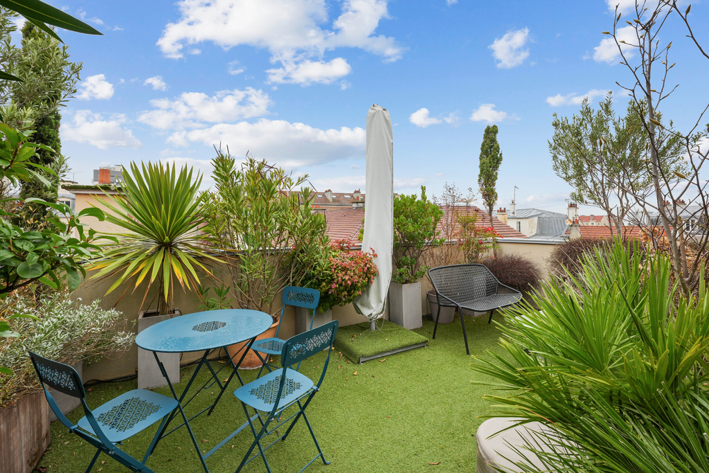 Atout majeur pour la vie en famille, une superbe terrasse de 25m², plein Ouest, sans vis-à-vis, paysagée et équipée d'un arrosage automatique, prolonge le séjour comme une pièce à ciel ouvert.