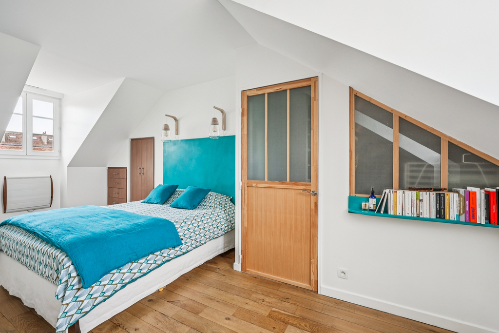 Traversant Est/Ouest, il offre une pièce de vie généreuse avec cuisine ouverte aménagée et équipée, trois chambres dont une suite parentale avec salle d'eau, une salle de bains, un WC séparé et de nombreux rangements en sous-pente.
