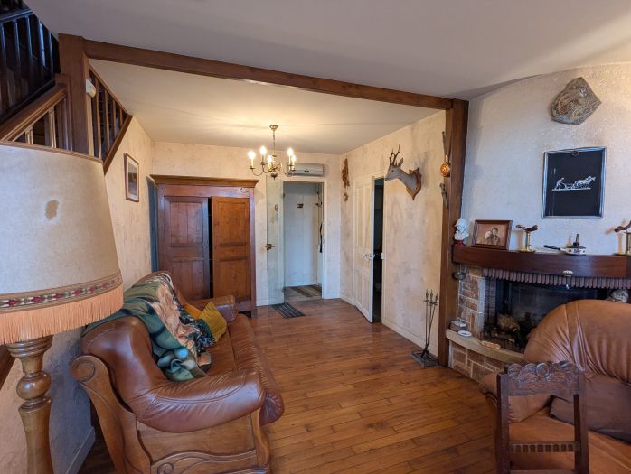 Au coeur d'un village tous commerces, venez découvrir cette jolie maison construite après guerre avec vue sur les Monts d'Auvergne. Parfaitement habitable en l'état, élevée sur une cave avec partie chaufferie, elle propose de plain pied une cuisine aménagée, un séjour avec cheminée, une chambre avec sde et wc et un 2nd wc ; à l'étage, un palier dsitribue une pièce de passage, un bureau, 3 chambres, une sde avec wc et une sdb avec wc ; au-dessus, un grenier. Isolation extérieure sur 3 côtés, chauffage central au gaz + insert bois, double vitrage en place, grenier isolé, portes d'entrée récentes... Point fort de cette propriété, une seconde maison attenante divisée en 2 logements de 3 pièces. Travaux de rafraîchissement à prévoir sur cette partie. Garage indépendant (2 voitures) avec débarras attenants. Terrain clos et plat de 1040 m² env. A deux pas de toutes commodités, médecin, école primaire et collège.