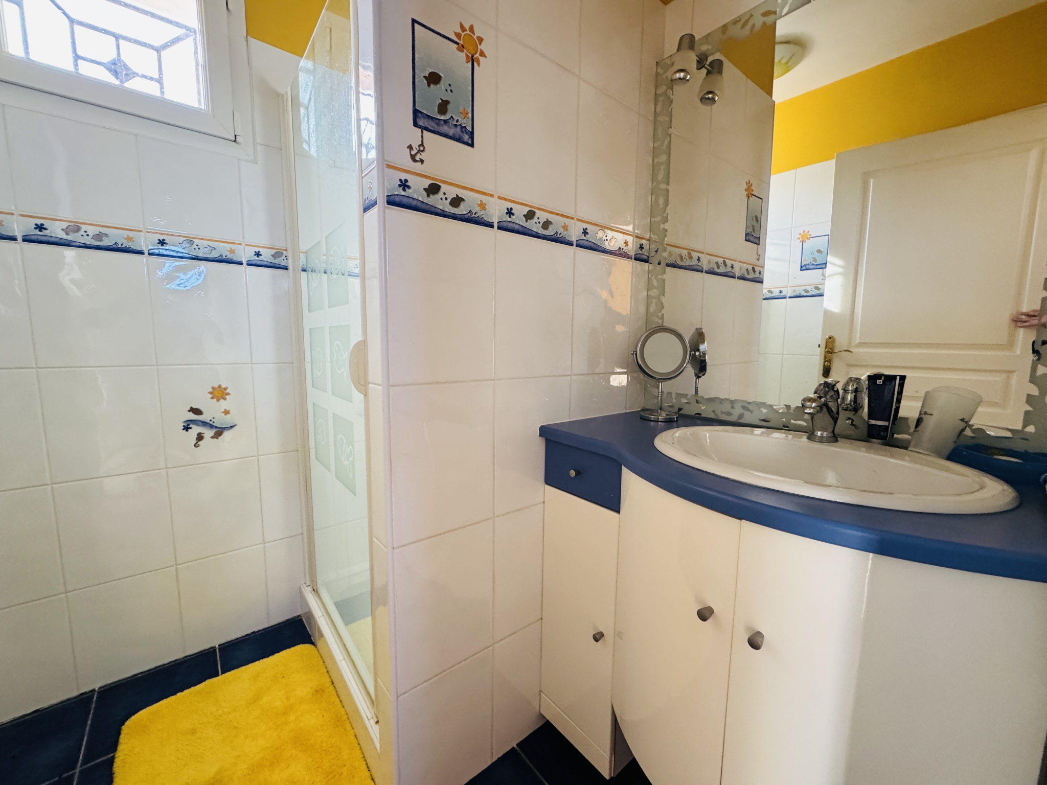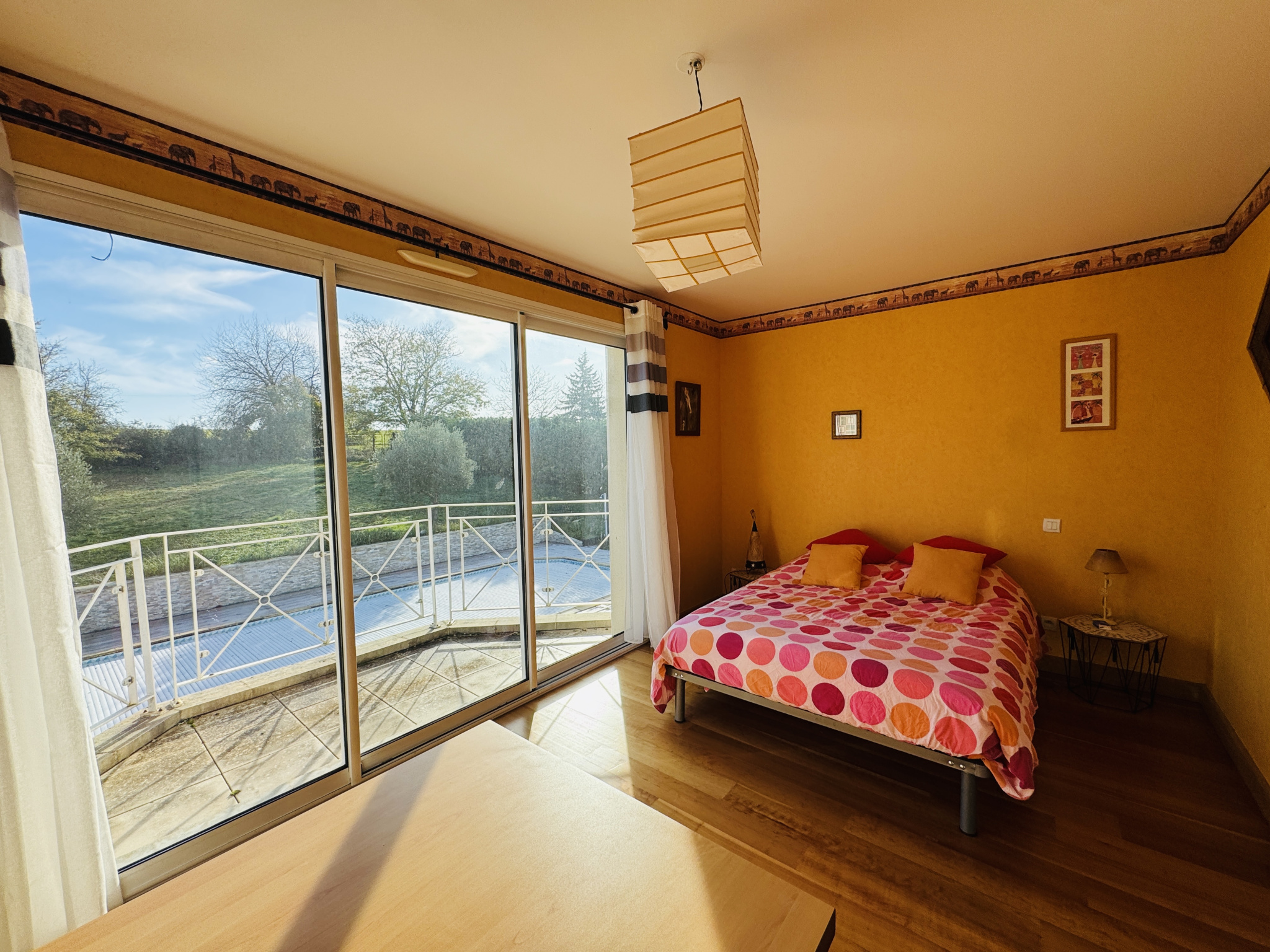 Au premier étage: palier desservant une grande chambre avec balcon dominant le jardin et la piscine, une autre chambre, salle d'eau.