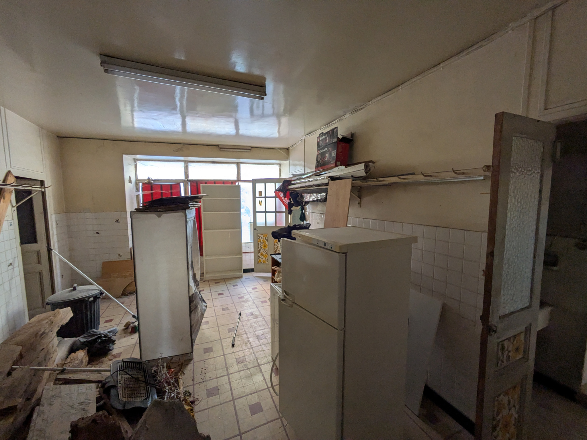 En RDC : 3 pièces à usage de local commercial (ancienne boucherie) donnant sur la rue principale + cave en sous-sol.