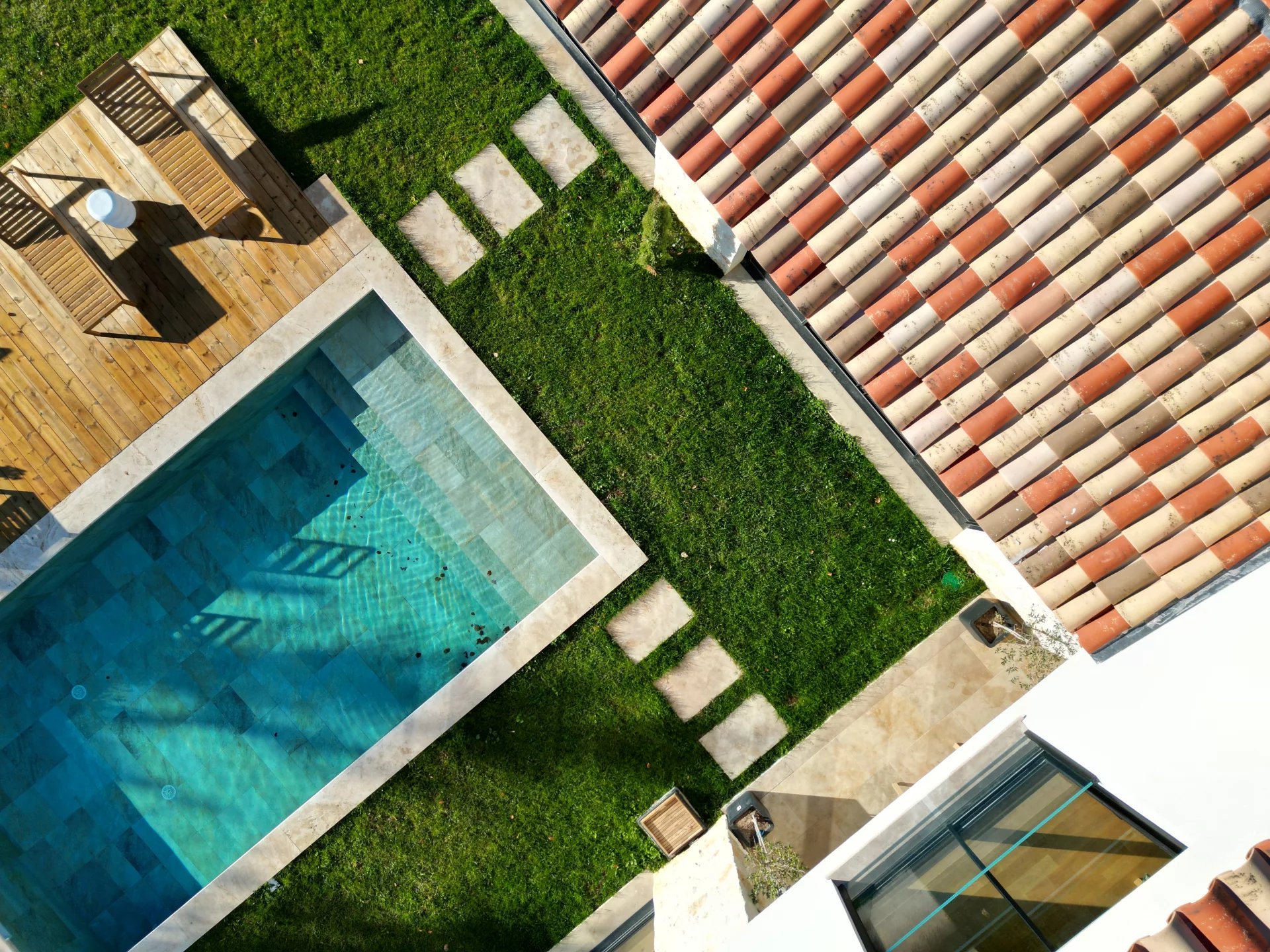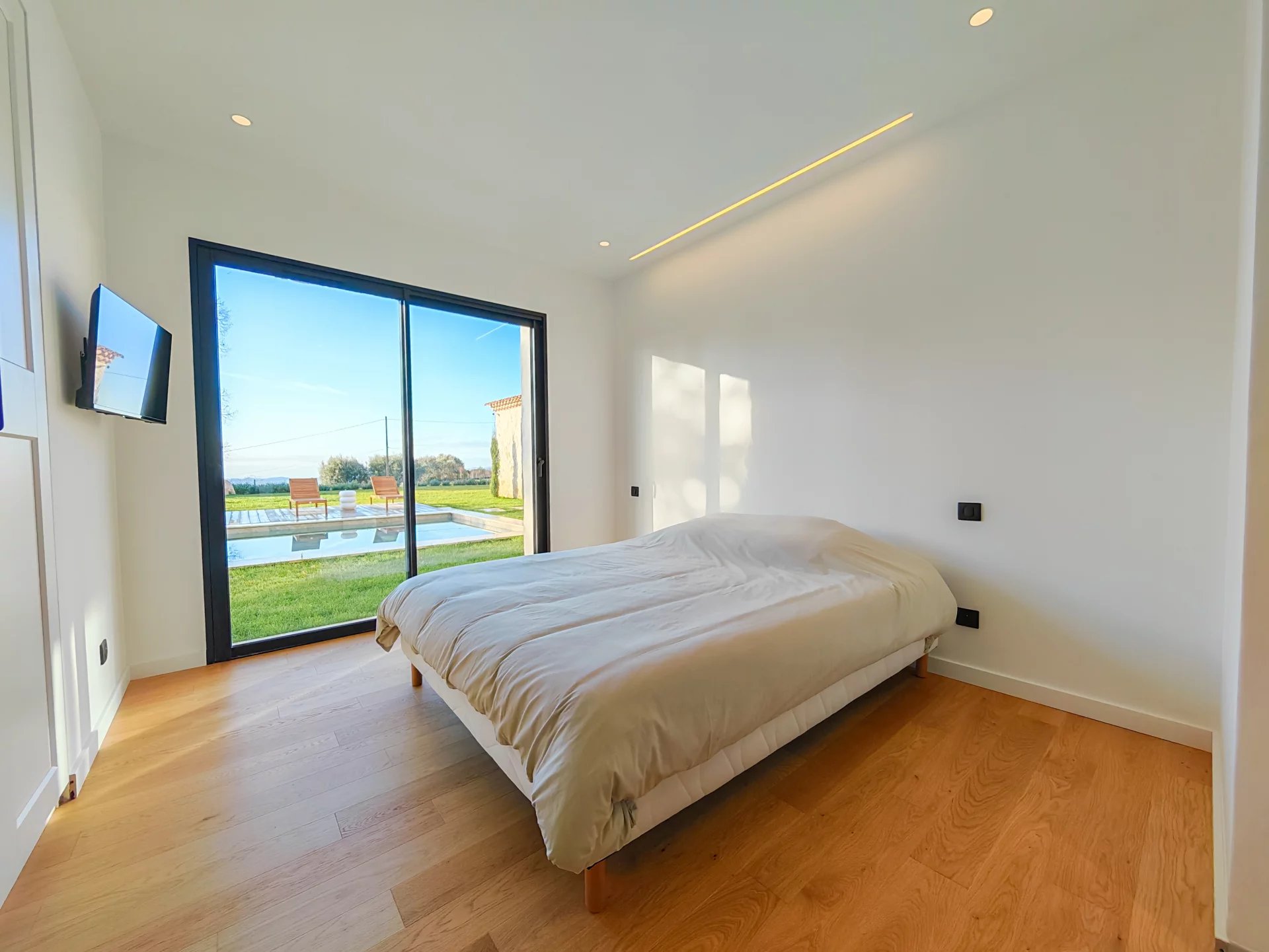 Conçue récemment, elle s’inscrit harmonieusement dans le paysage et offre une vue dégagée d’une grande beauté, allant de la mer aux collines environnantes. La lumière circule librement dans chaque pièce, et la suite parentale profite d’un lever de soleil spectaculaire qui rythme les matinées avec douceur.