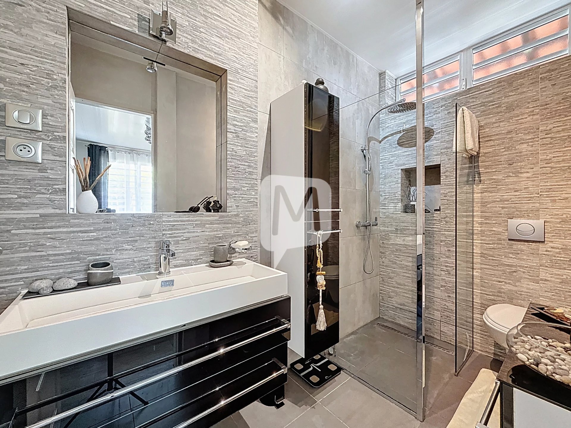 À l’intérieur, vous serez accueilli par une entrée donnant sur un séjour spacieux et lumineux, ouvert sur une cuisine aménagée et entièrement équipée. La partie nuit se compose de deux chambres confortables, ainsi que d’une suite parentale disposant de sa propre salle d’eau et de son WC. Une seconde salle d’eau avec WC complète cet espace, offrant un véritable confort pour la famille ou les invités.