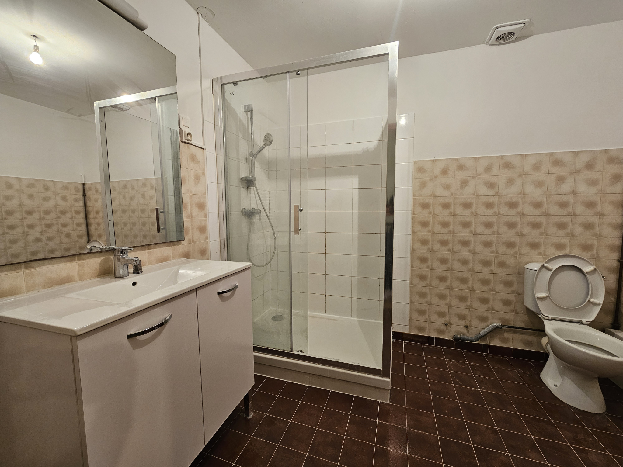 À l'étage : Une très grande chambre principale de 17 m2, une seconde chambre de 8 m2 (idéale chambre d'enfant ou bureau), une salle d'eau avec WC.