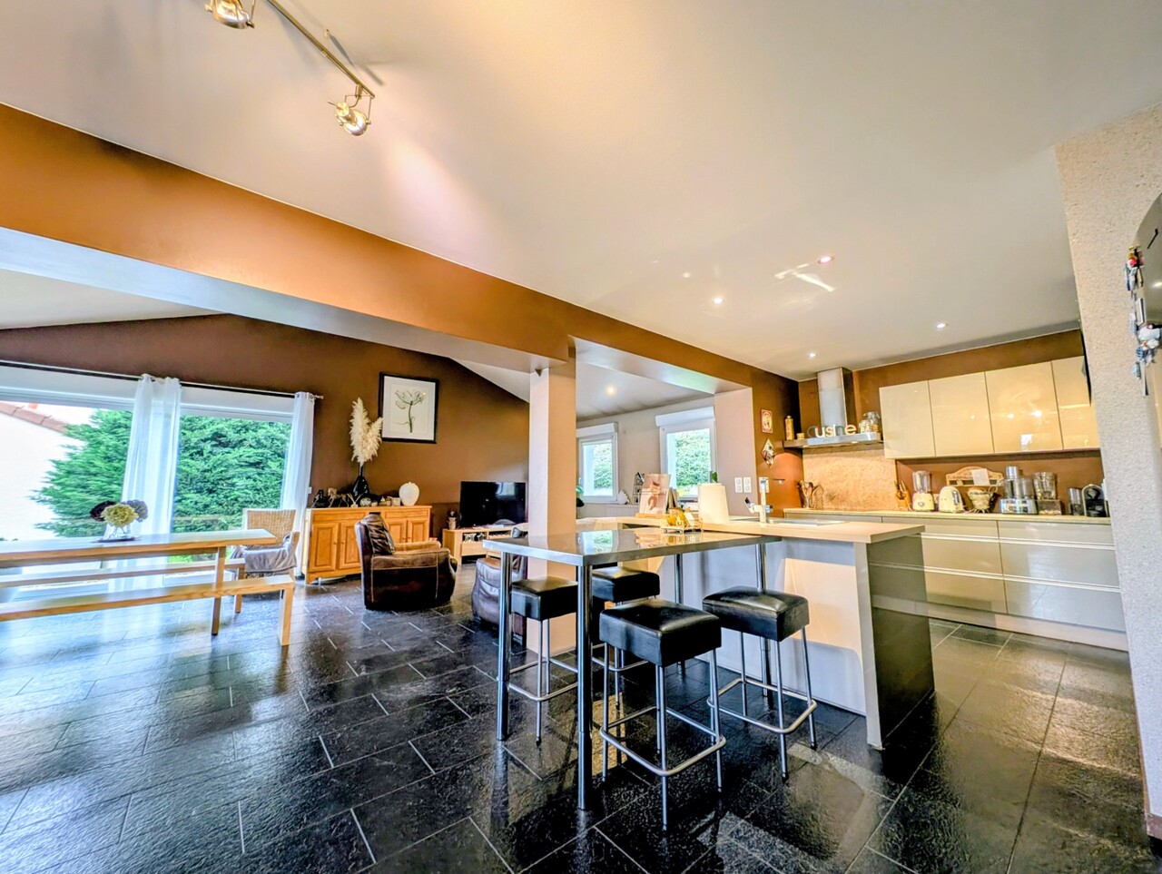 • Une pièce de vie XXL de 60 m² baignée de lumière, avec accès direct à la terrasse.