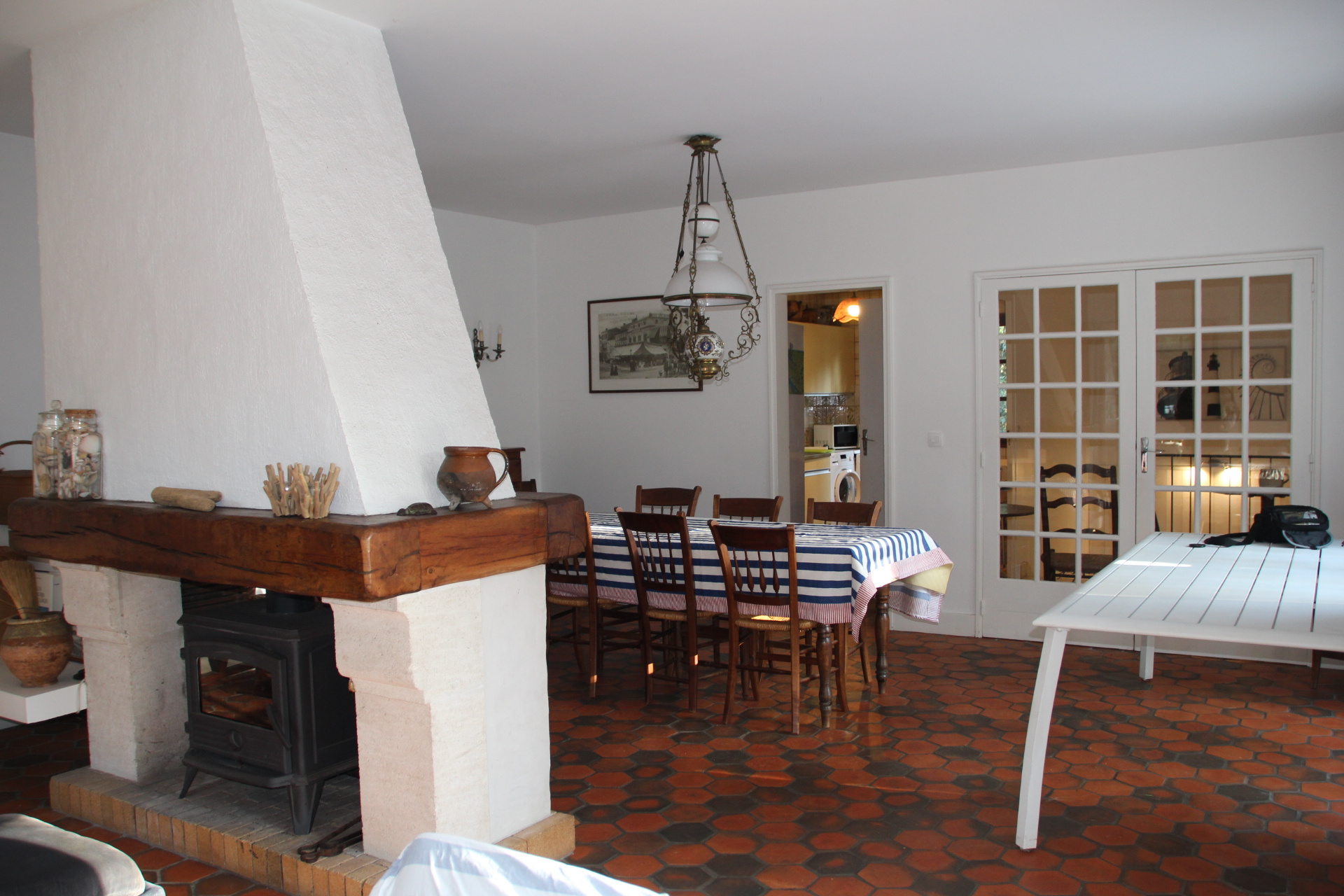 - Au rez-de-chaussée surélevé de 1 marche : entrée, grande pièce de vie avec poêle central donnant sur agréable terrasse orientée au Sud-Ouest, cuisine, 2 chambres avec placard, salle de bains, W.C. et dégagements.