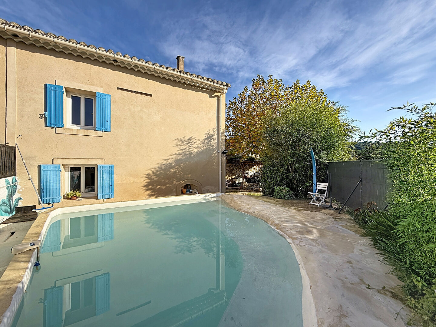 La cour extérieure reste intime à l'abri des regards. La piscine est au sel et fait 3x5 m