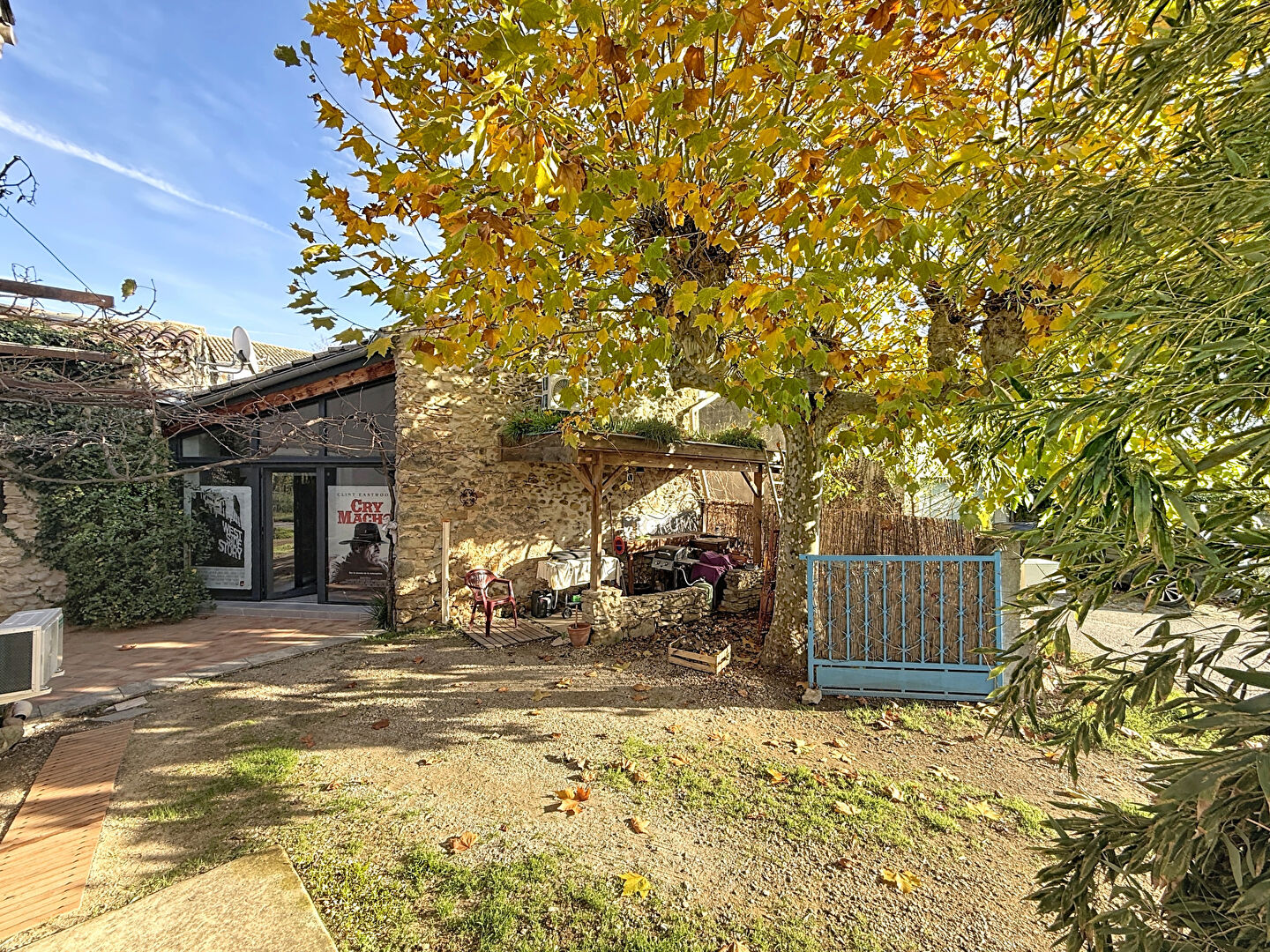 Le mas repose sur une parcelle de 365 m². Il propose une ambiance chaleureuse et lumineuse. La maison principale comprend trois chambres, une cuisine et un vaste salon avec belle hauteur sous plafond. Une mezzanine aménagée en bureau complète cet espace agréable. La climatisation réversible récente assure un confort quotidien. Le double vitrage renforce l'efficacité énergétique.